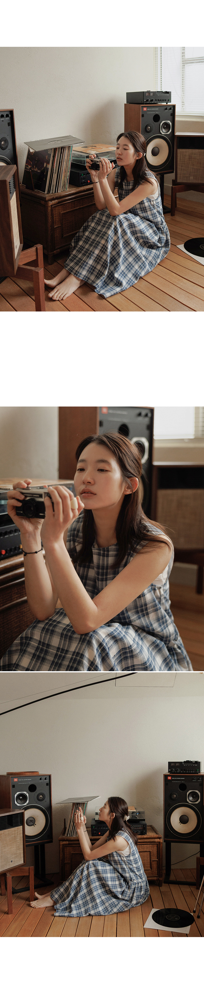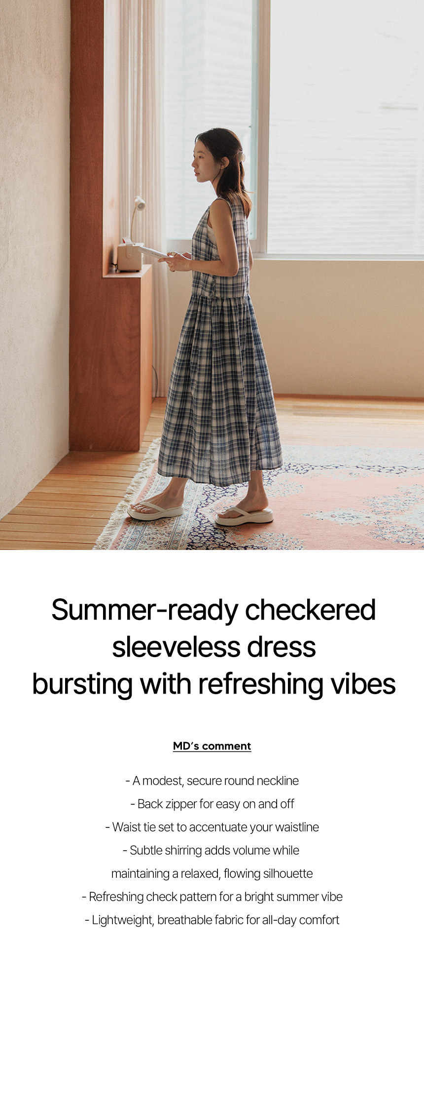 A breezy tank dress full of refreshing summer vibes with a crisp checkered pattern! Made from lightweight, breathable cotton, it keeps you cool, and the matching waist tie lets you create flattering silhouettes.