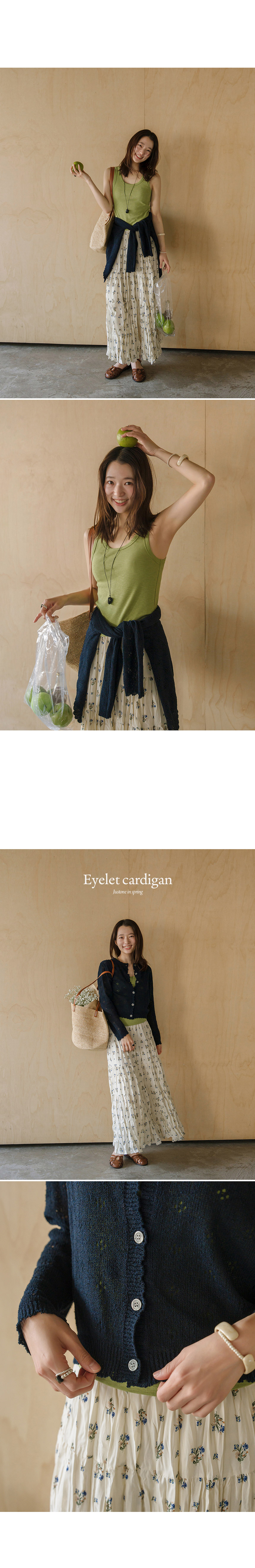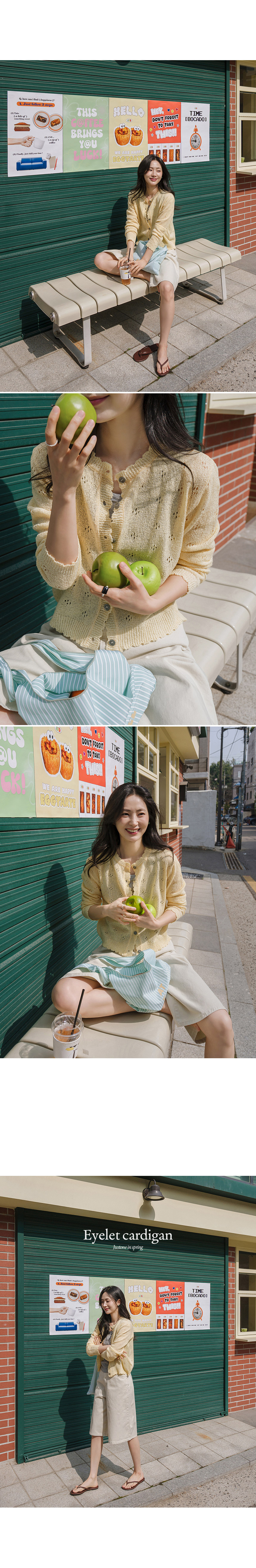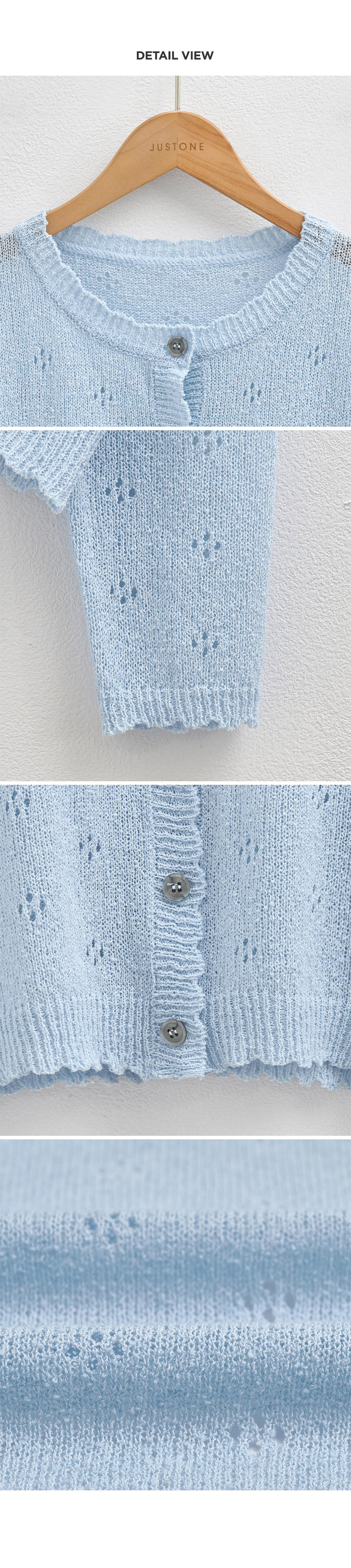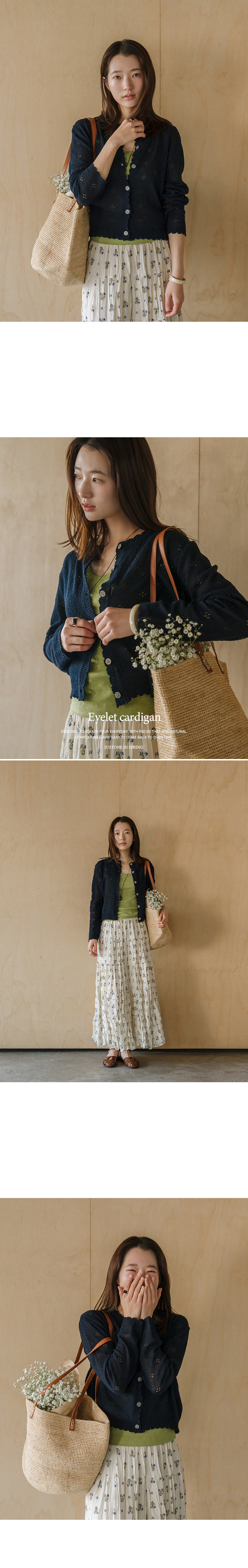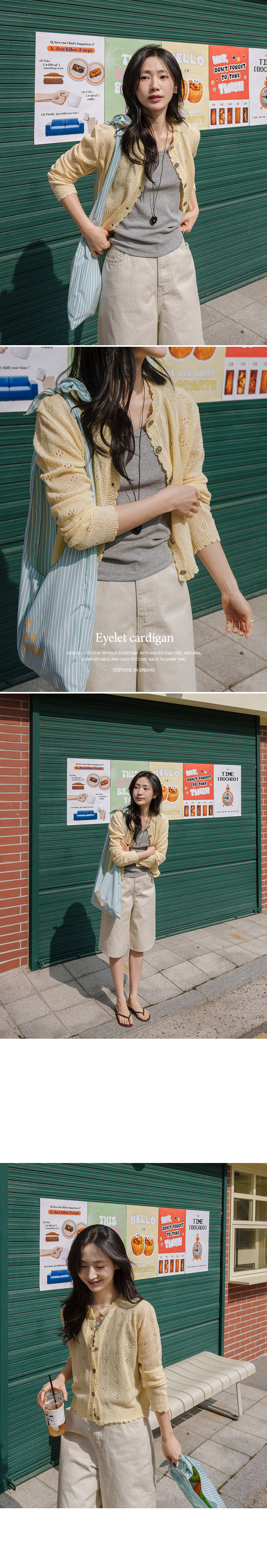 This round-neck cardigan features a breathable and textured knit with a delicate, airy feel. Versatile enough to pair with skirts or pants, it’s perfect for everyday wear.