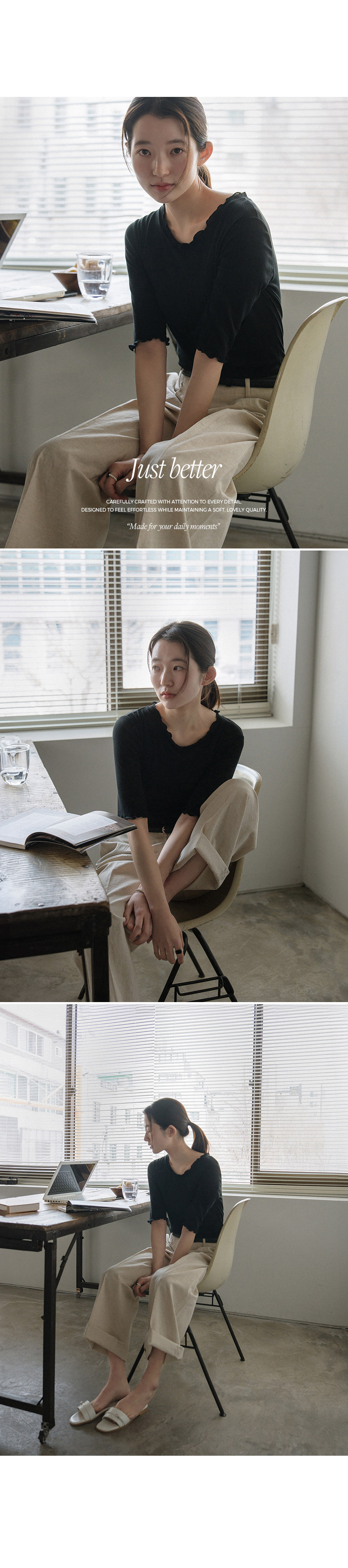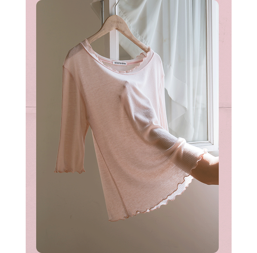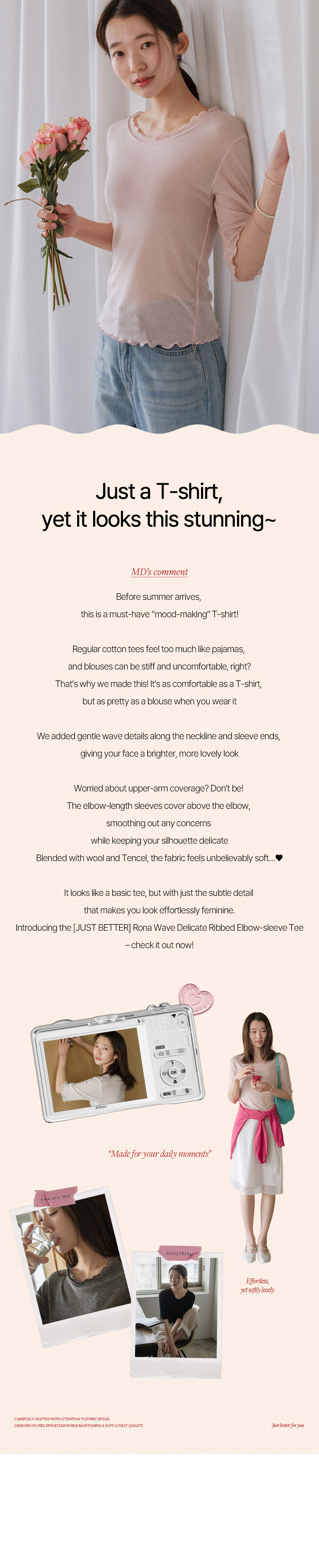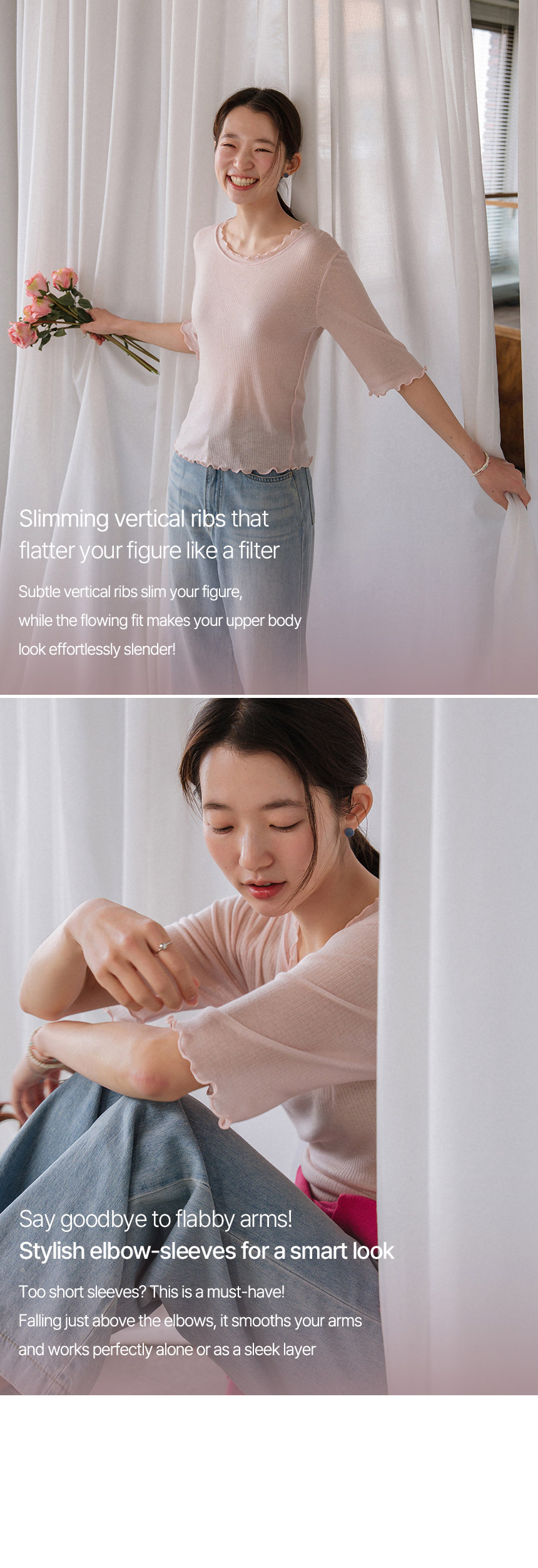 [JUST BETTER] Rona Wave Delicate Ribbed Elbow-sleeve Tee