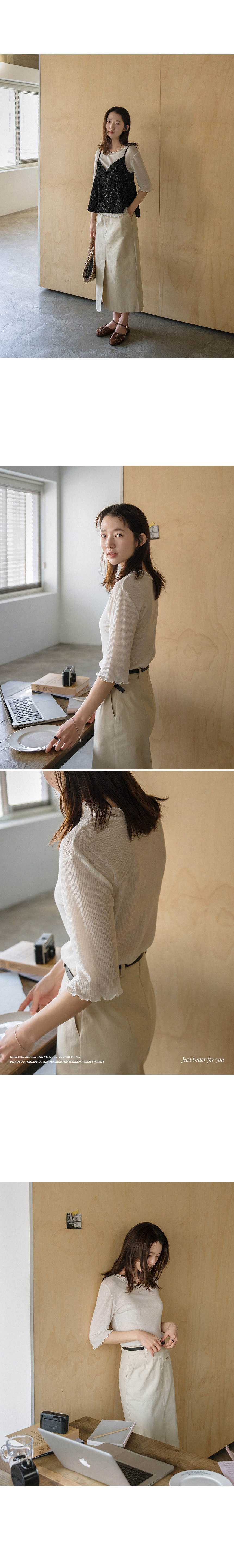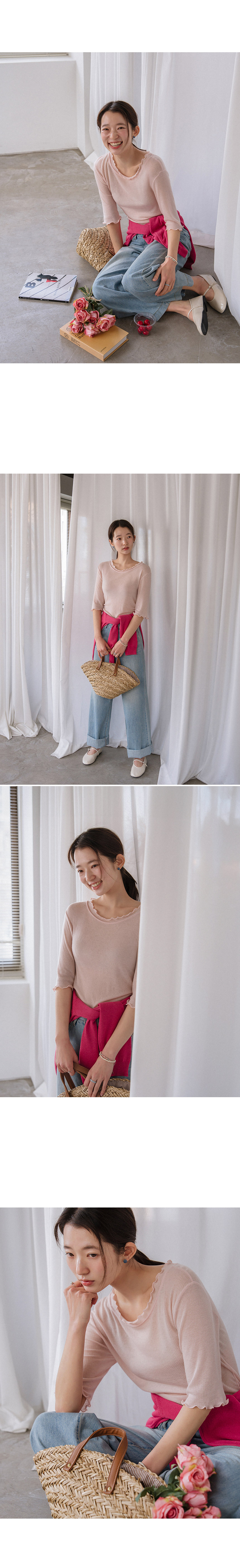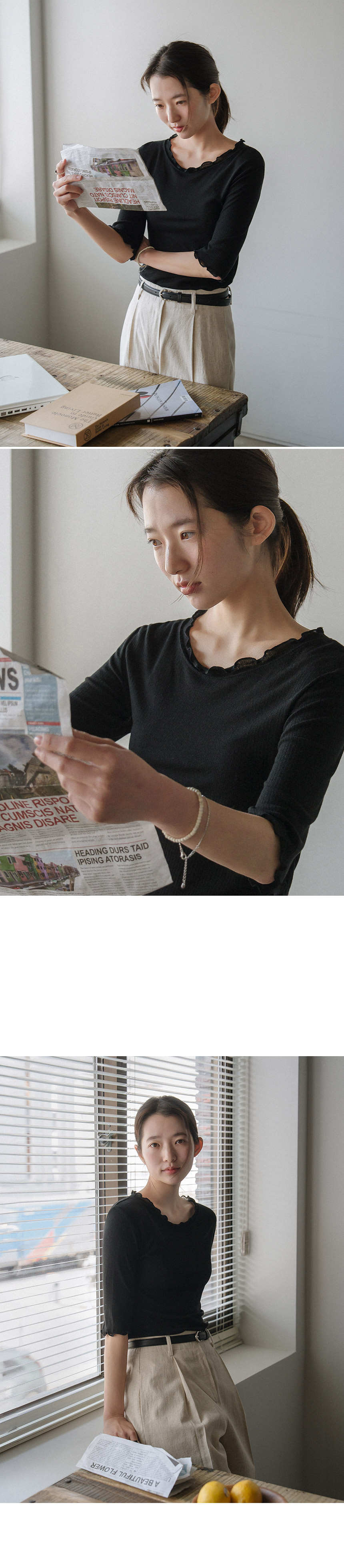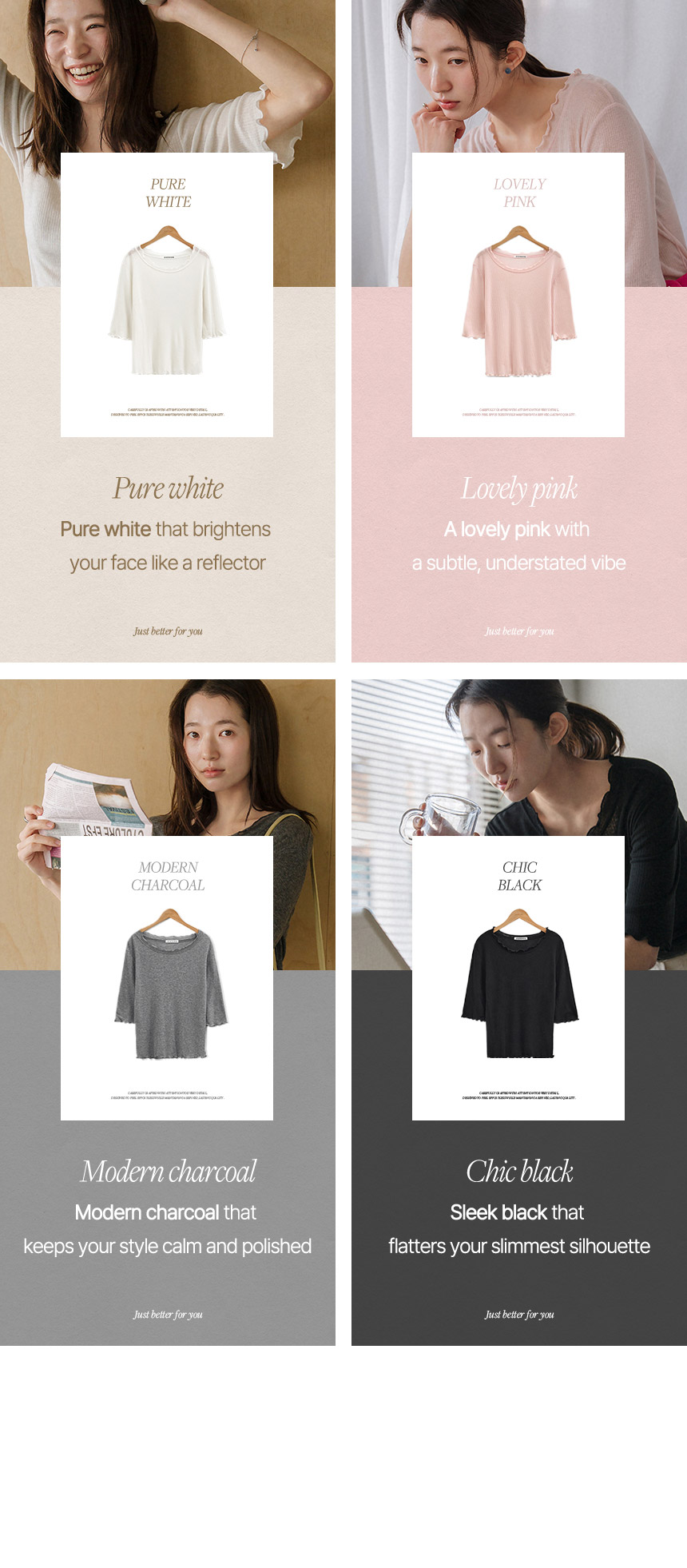 [JUST BETTER] Rona Wave Delicate Ribbed Elbow-sleeve Tee
