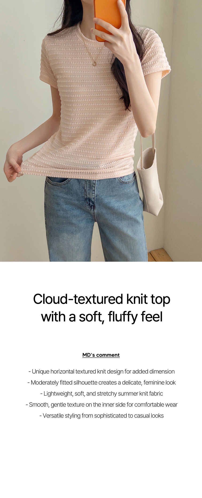 A special knit top featuring a unique, fluffy texture. With added stretch for all-day comfort, it brings a stylish accent to your look even when worn on its own - truly a signature piece!