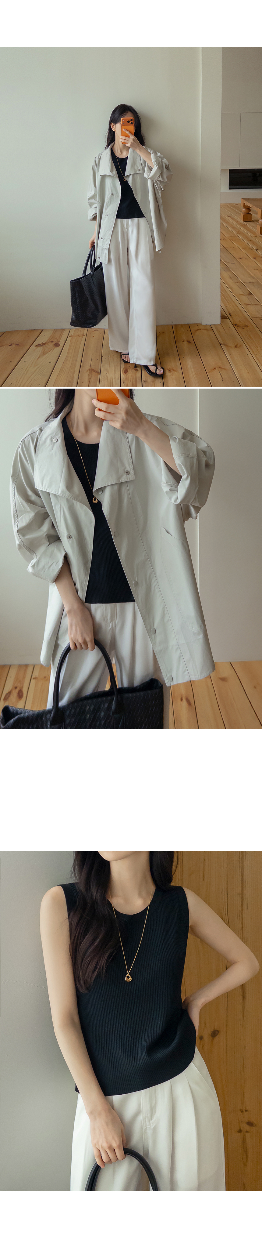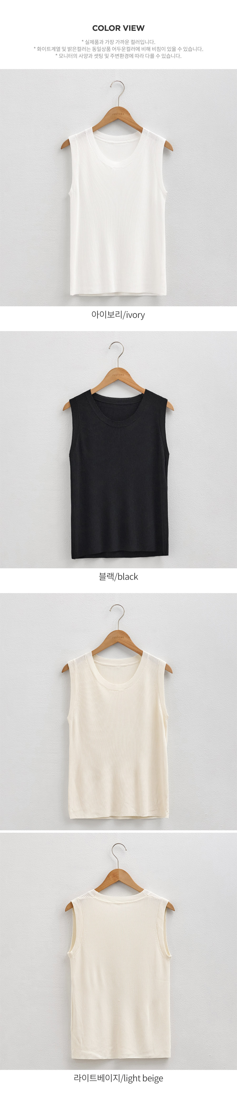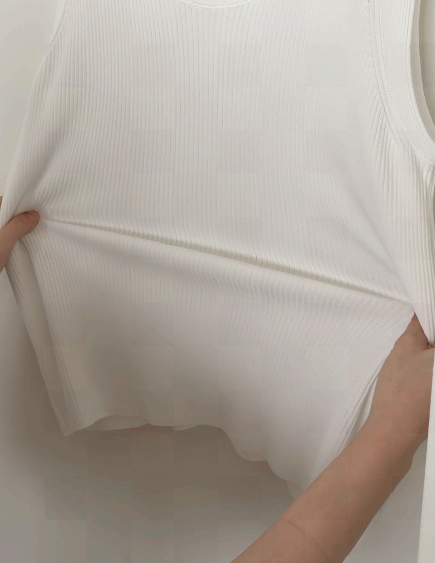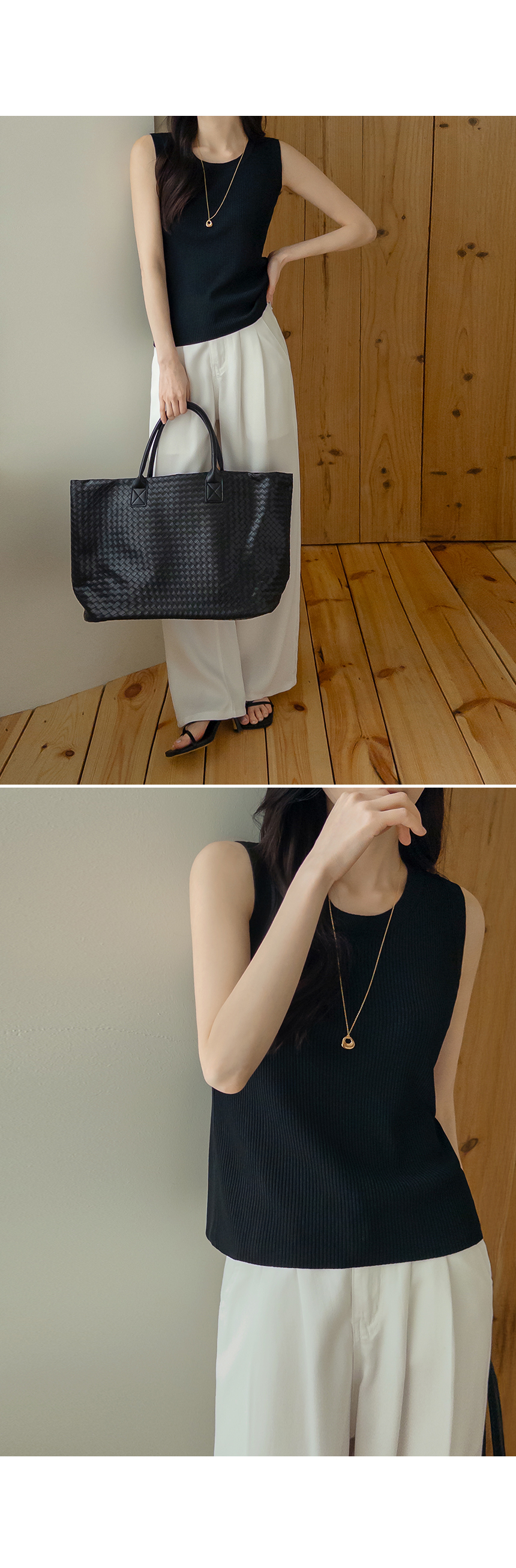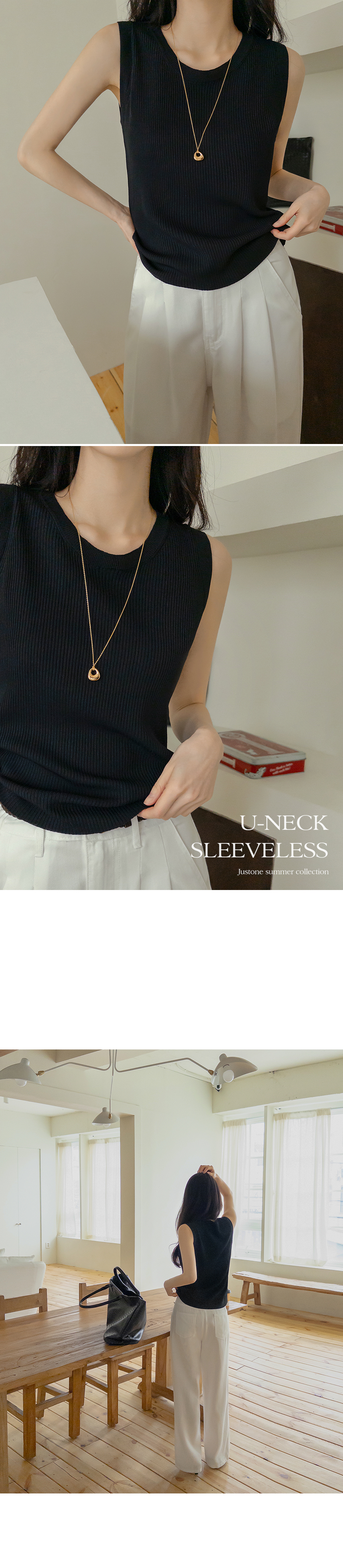 This knit sleeveless top is perfect for creating a clean, polished look. The ribbed texture enhances a slim silhouette, while the flexible knit fabric ensures a comfortable fit without feeling restrictive.