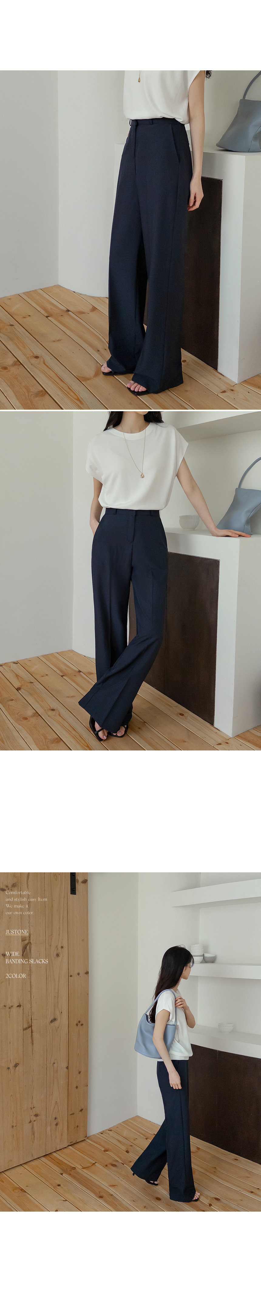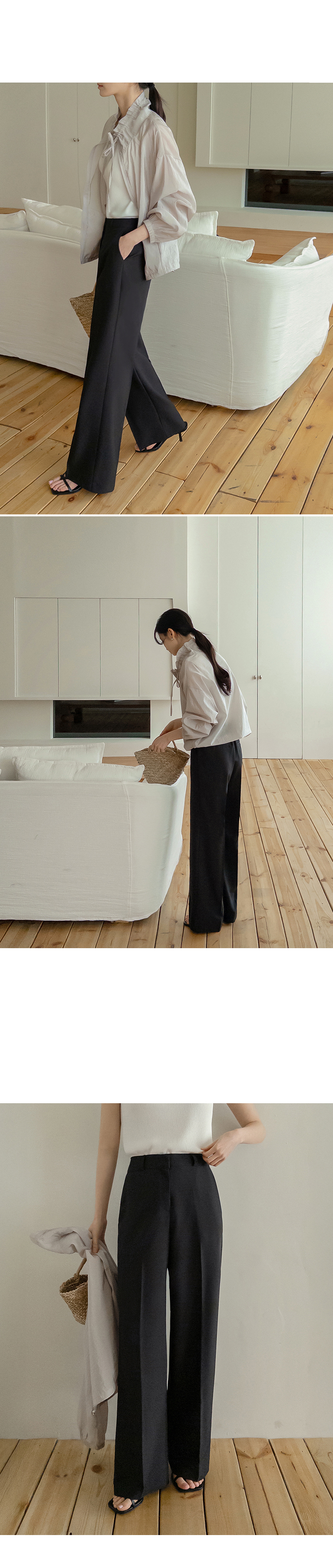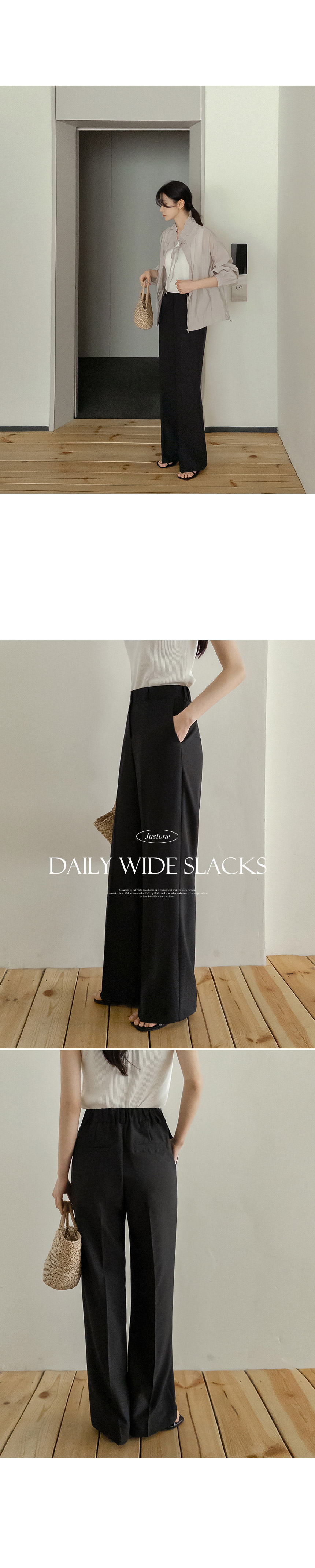 These are the slacks featuring a sleek fabric and a flowing fit! They offer a comfortable fit with an elastic waistband at the back and are wrinkle-resistant, making them perfect for everyday wear!