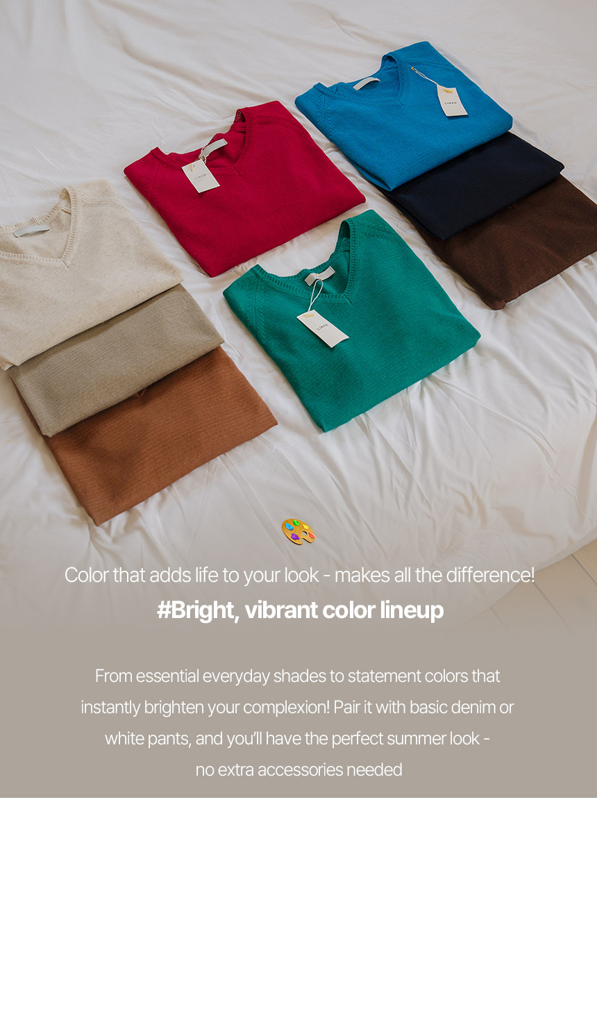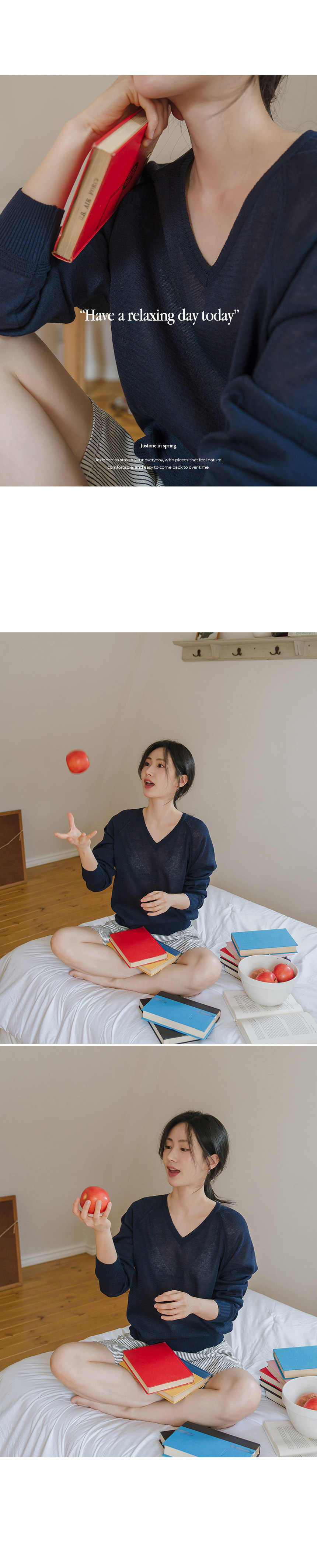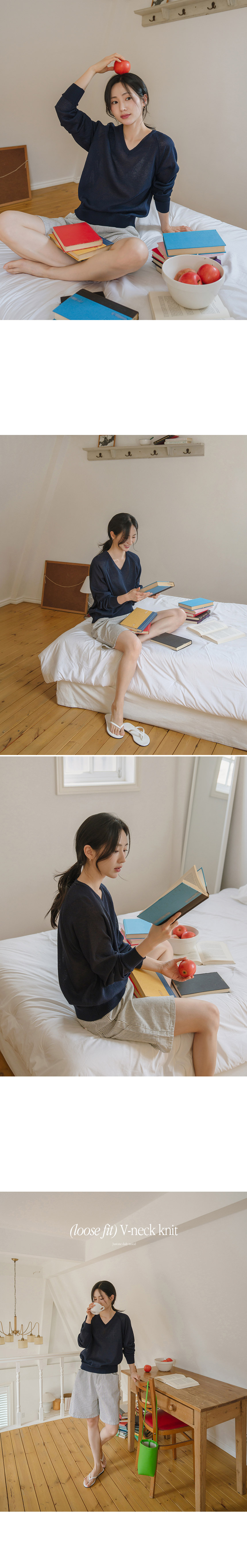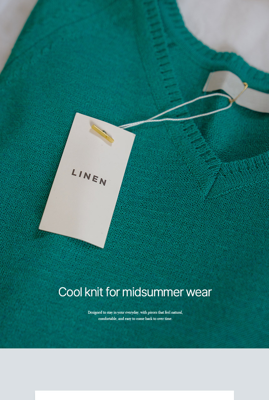 This V-neck knit is crafted from a breathable, soft fabric, making it perfect for even summer wear. It drapes naturally over the body, offering a cool and comfortable fit for effortless everyday style.