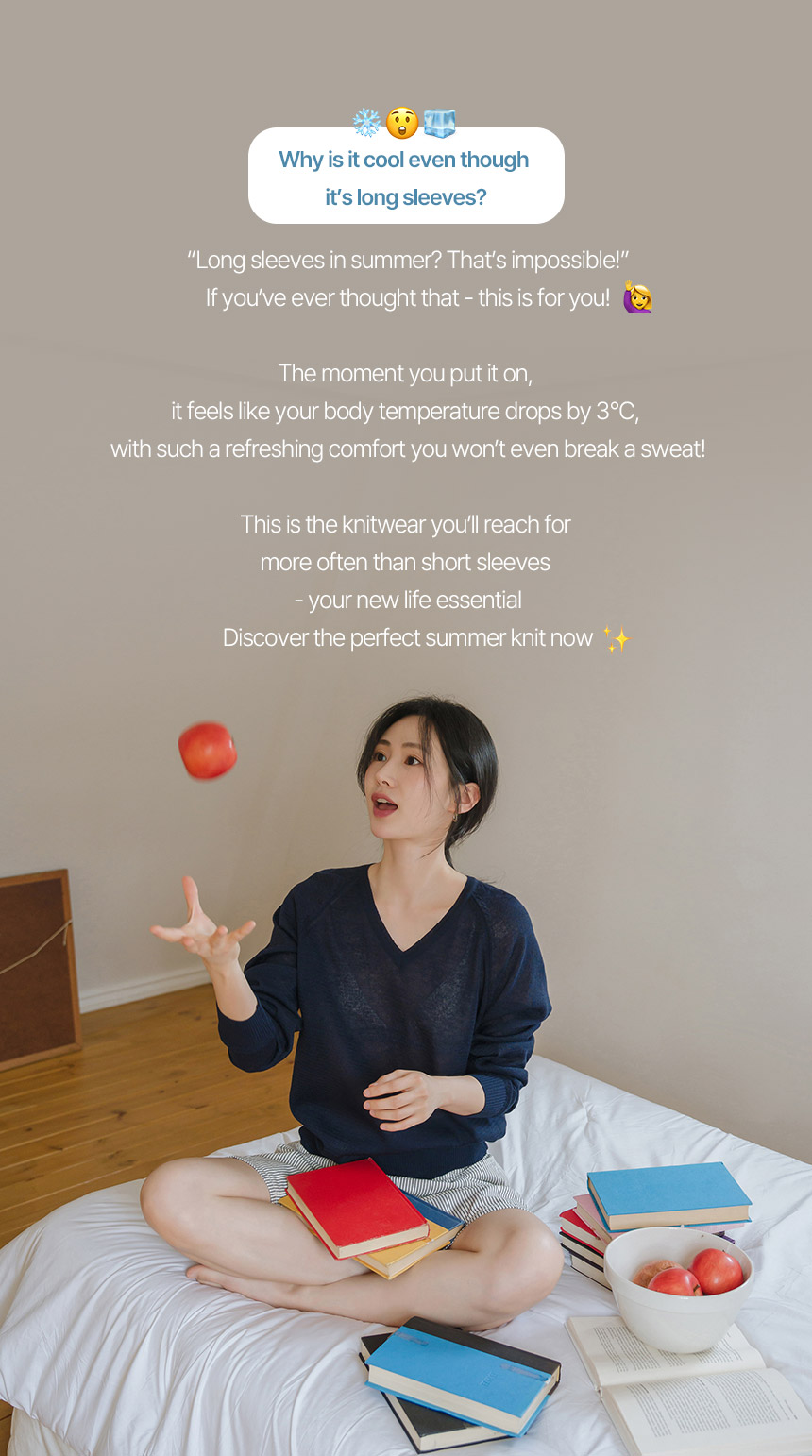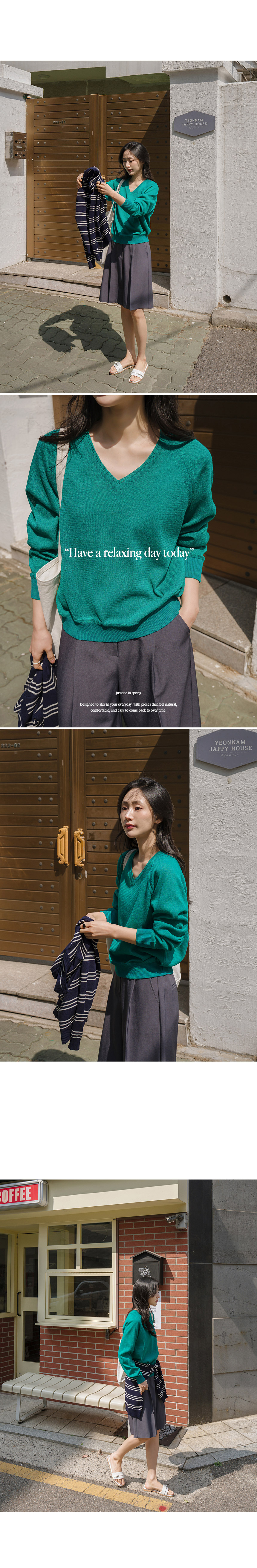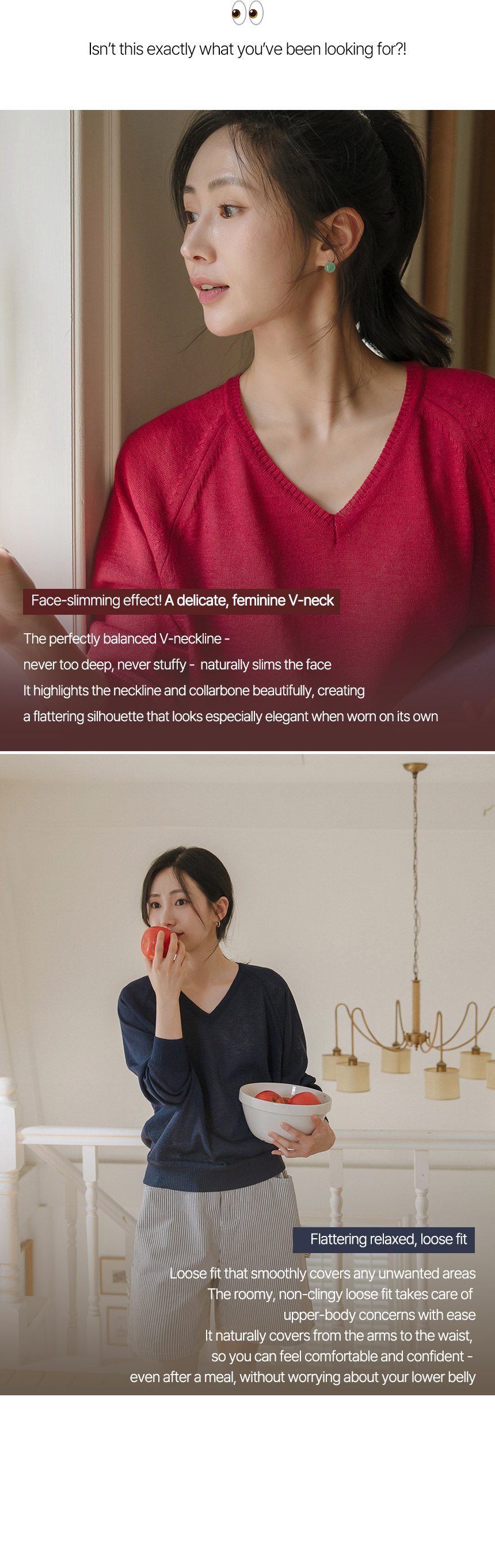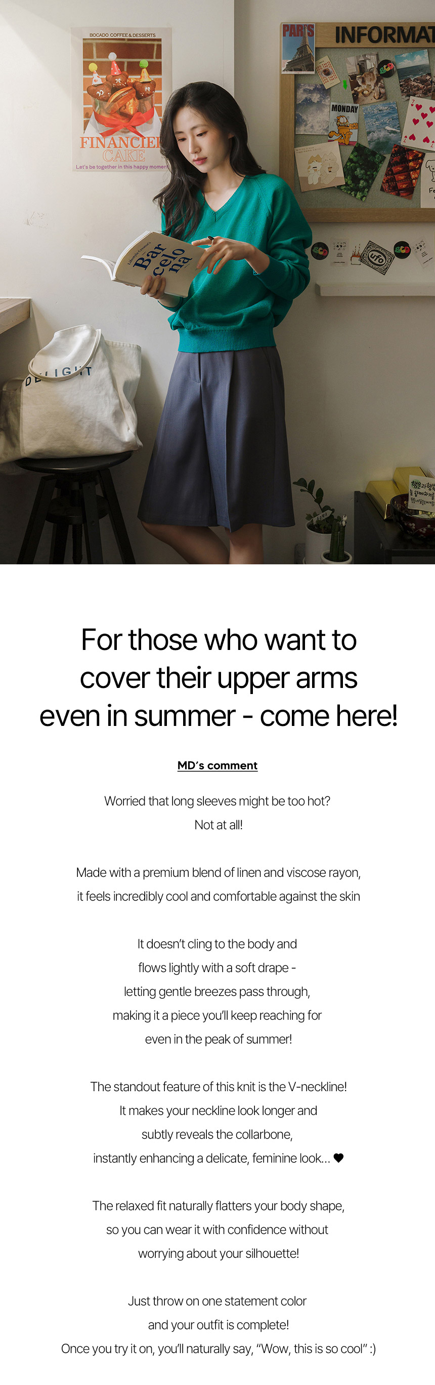 This V-neck knit is crafted from a breathable, soft fabric, making it perfect for even summer wear. It drapes naturally over the body, offering a cool and comfortable fit for effortless everyday style.