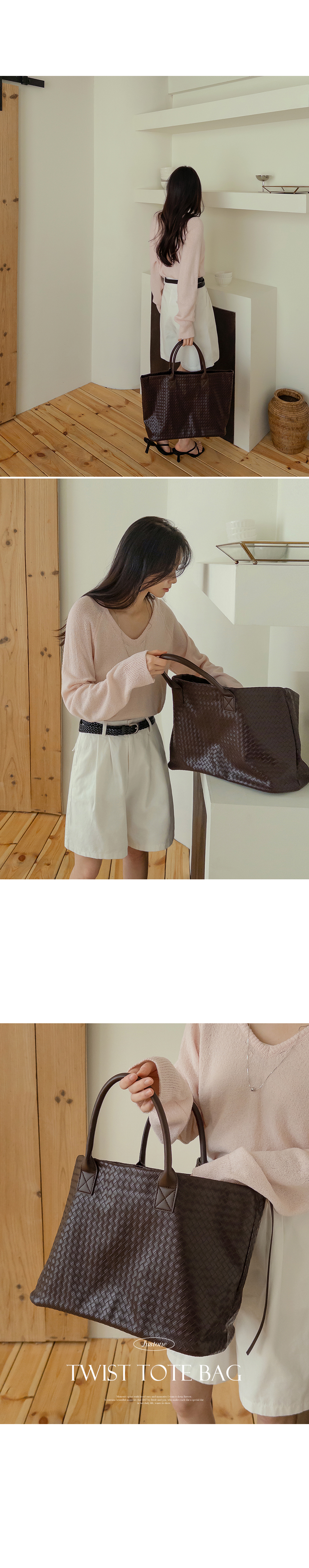 This tote bag features the timeless appeal of a twisted design. It offers ample space for all your essentials, while the intricate detailing adds a touch of elegance and effortless style.