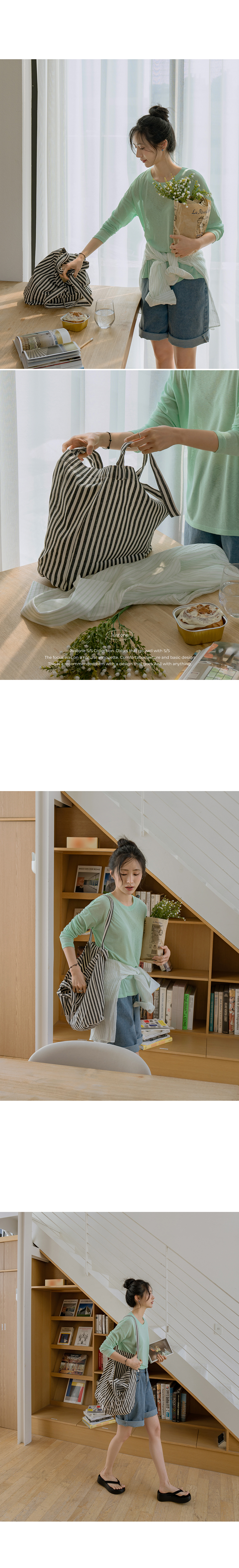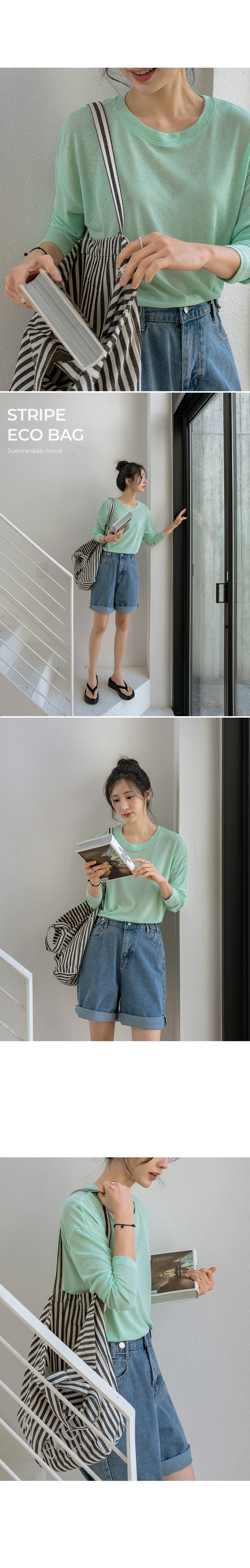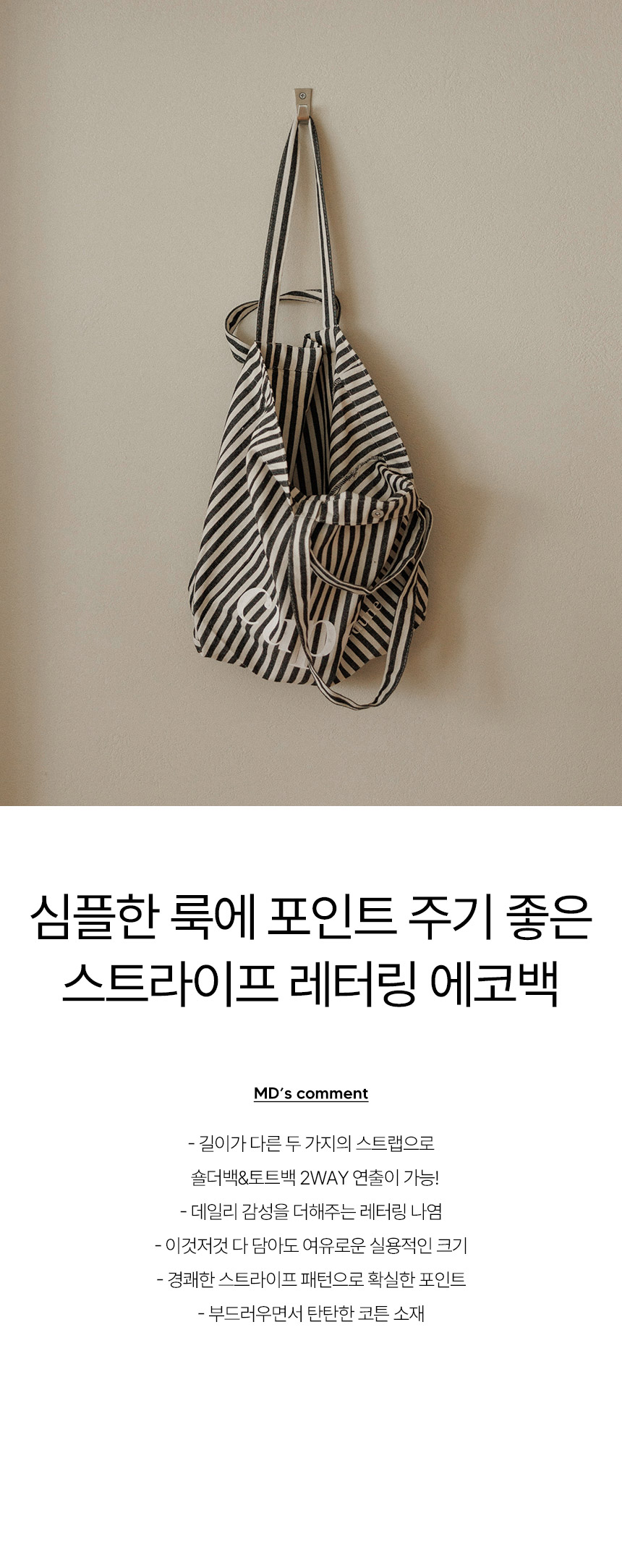 This eco bag features a cheerful striped pattern that adds a distinctive accent to any simple look. With straps of different lengths, it can be styled in multiple ways, making it perfect to carry as both a shoulder bag and a tote bag.
