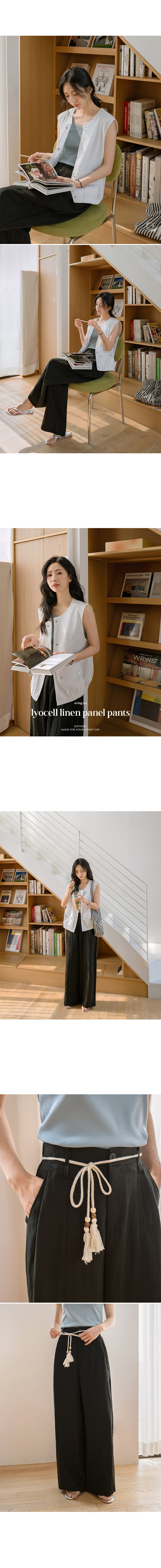 Extra-cool Lyocell Linen Panel Pants (with Strap Set)