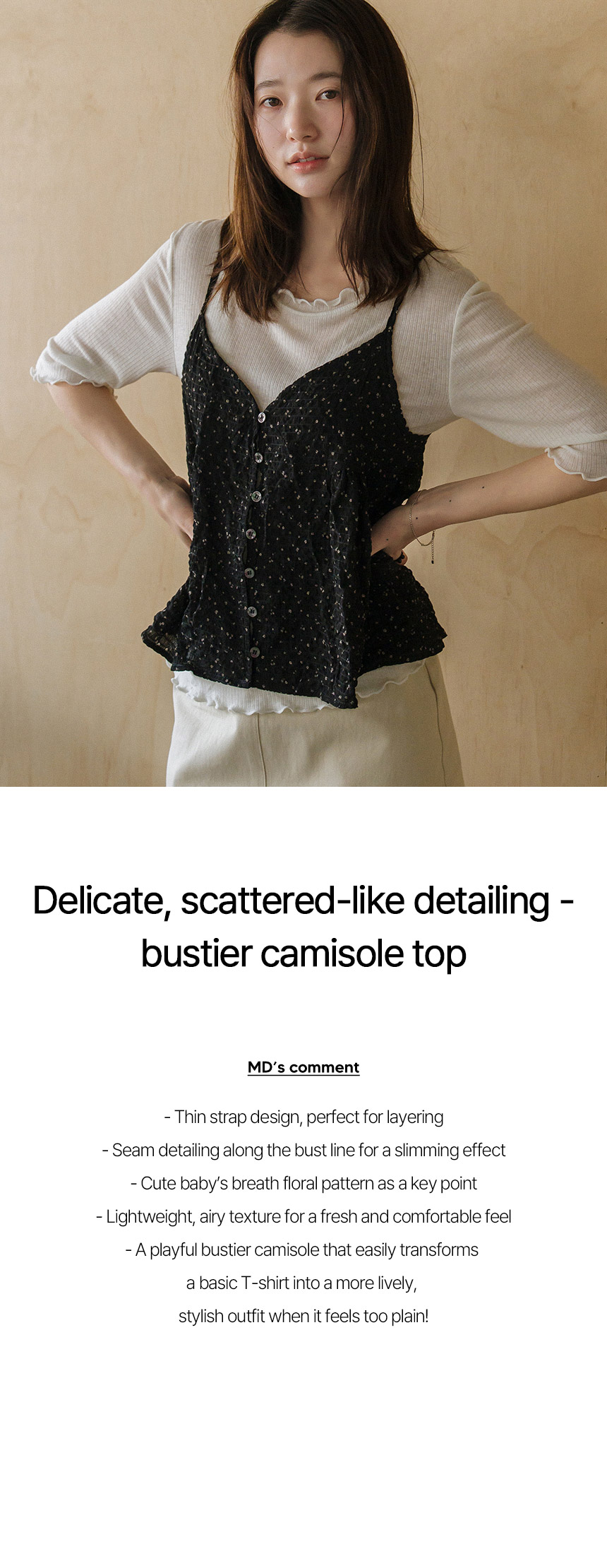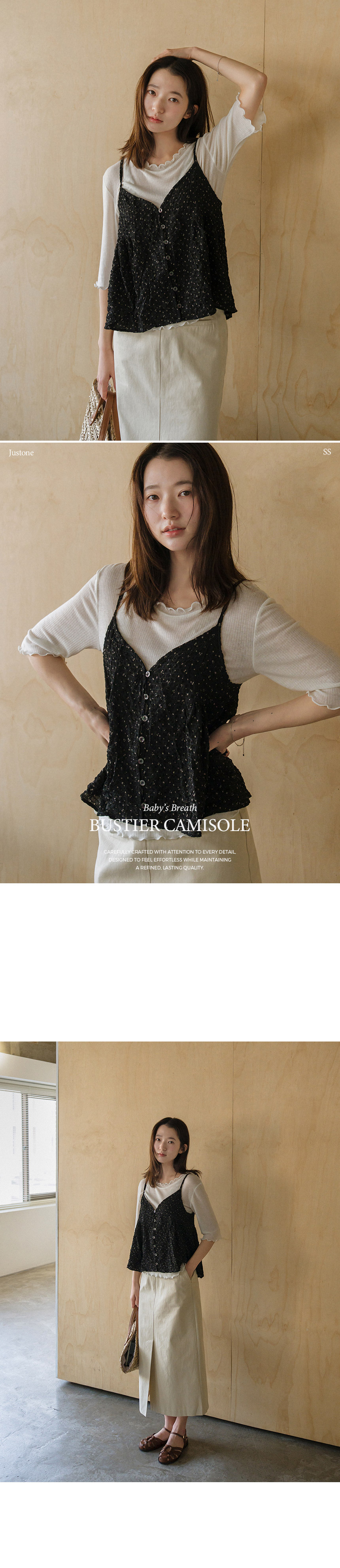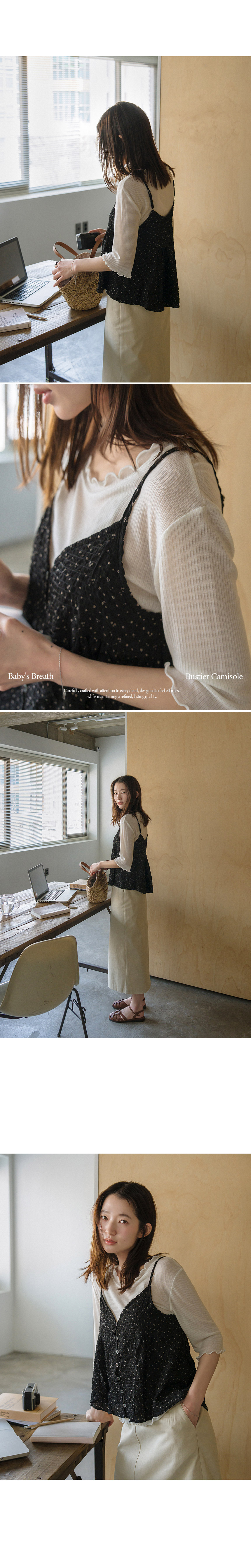 When a basic T-shirt feels a bit too plain, simply layering on this lovely baby’s breath bustier instantly creates an adorable look. It also provides gentle tummy coverage, making it comfortable to wear.