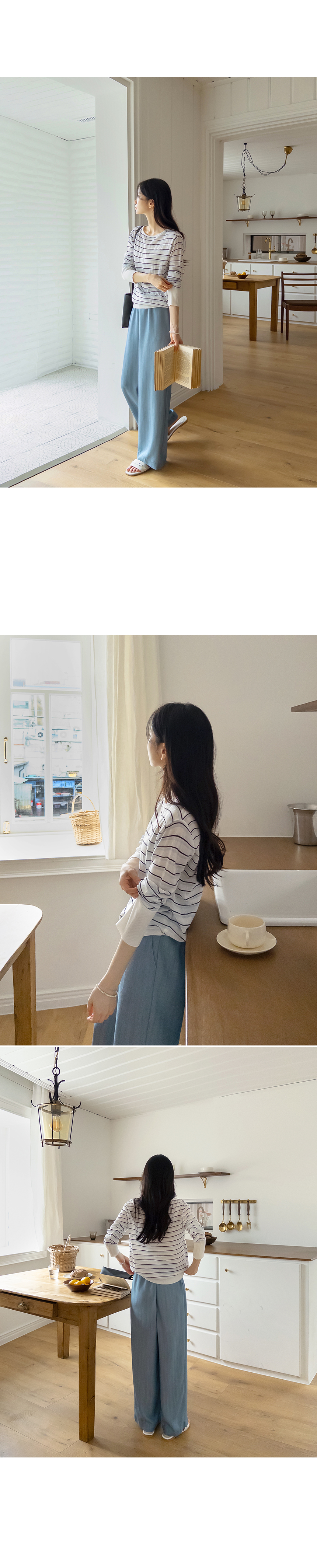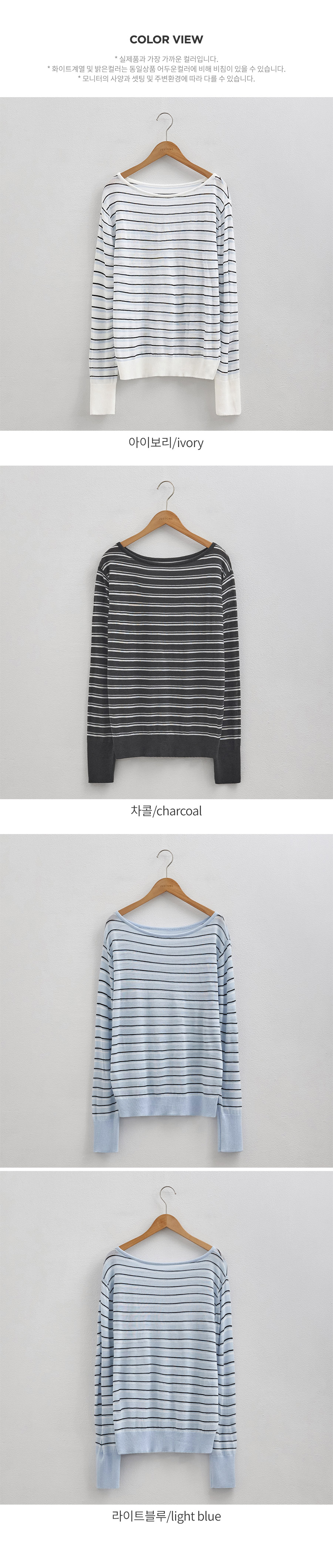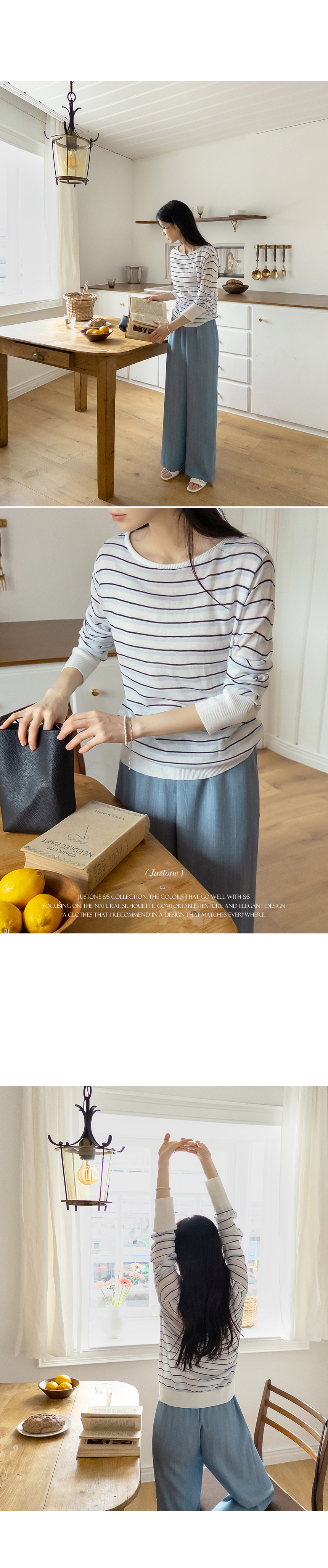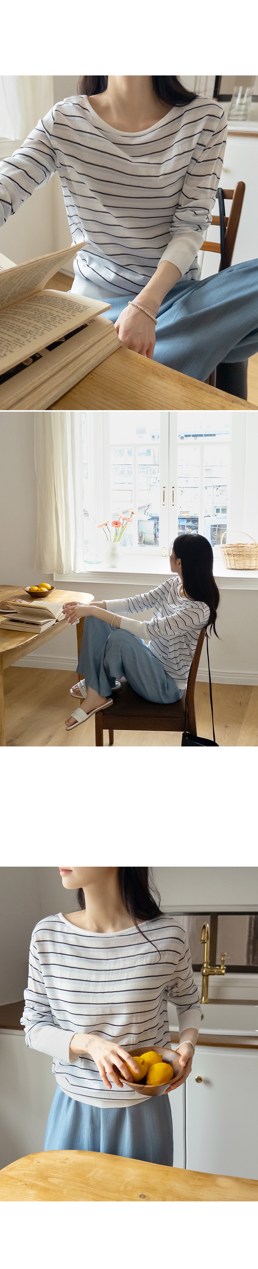 This knitwear features a gently flared boat neckline that highlights the collarbone, a subtle stripe pattern for a stylish touch, and a lightweight, breathable fabric that makes it perfect even for midsummer wear.