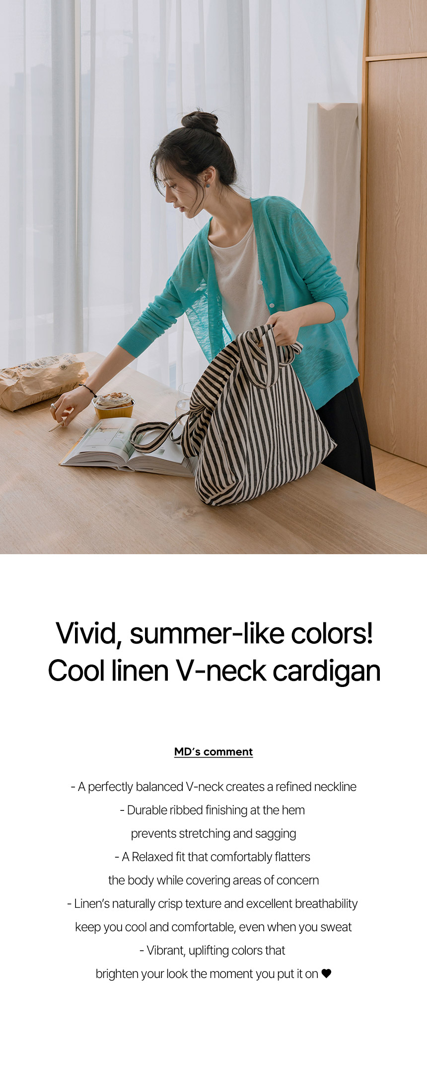 This V-neck cardigan features vibrant, summer-inspired colors for a fresh look. Crafted from a linen-blend knit, it offers excellent breathability and a comfortable fit that keeps you feeling cool and refreshed, even on warm, sweaty days.