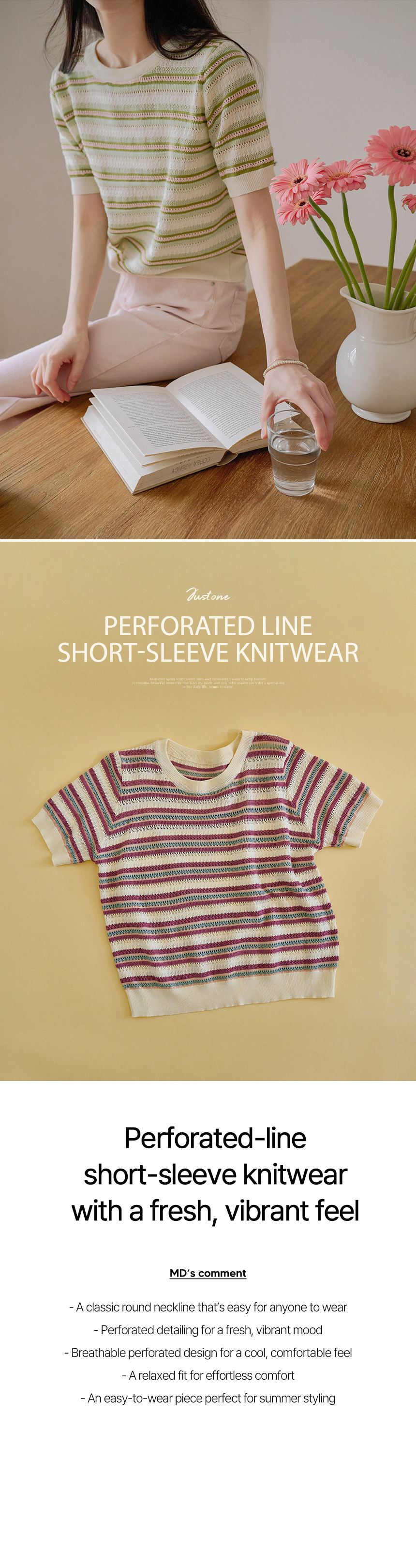 This short-sleeve knit top comes in beautiful, vibrant colors. The perforated detailing allows for breathability while adding a bright accent, making it an easy piece that feels fresh and stylish just by putting it on.