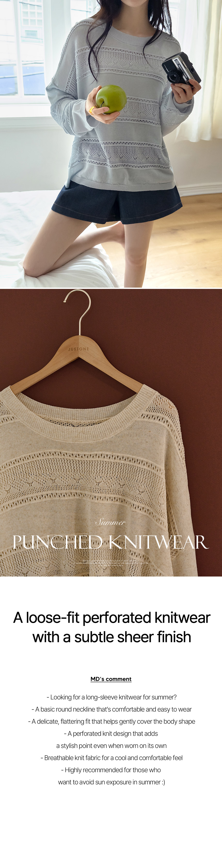 This stylish piece features a relaxed fit and a perforated knit design that creates a subtle pattern. Lightweight and breathable, it’s perfect for staying comfortable even in the peak of summer heat :)