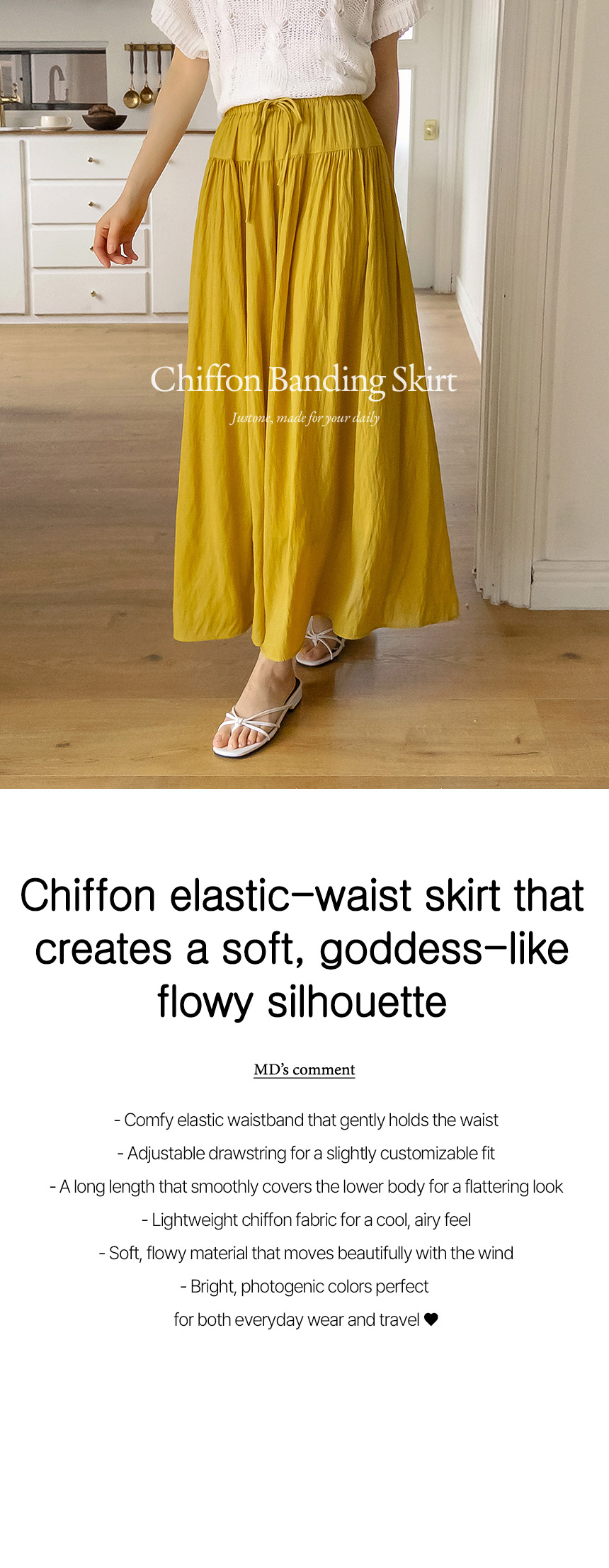 This lightweight, flowy maxi skirt drapes beautifully to provide natural coverage, offering a comfortable and flattering fit. The elastic waistband sits smoothly without bunching, ensuring all-day comfort.
