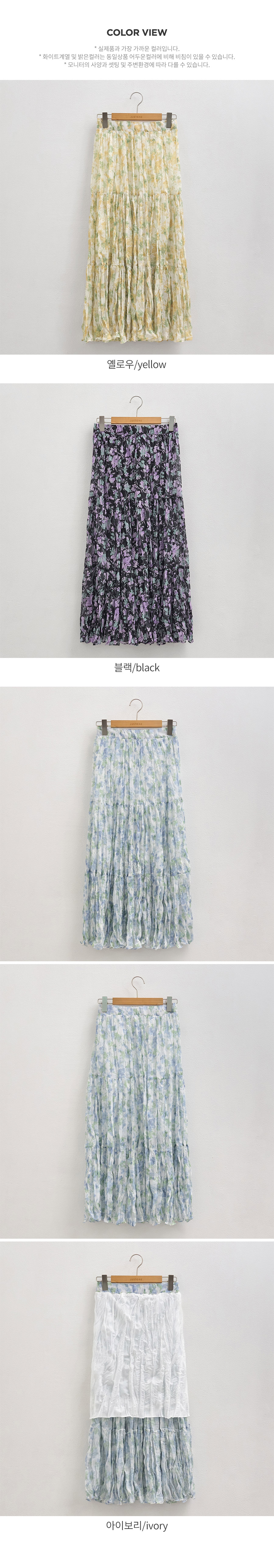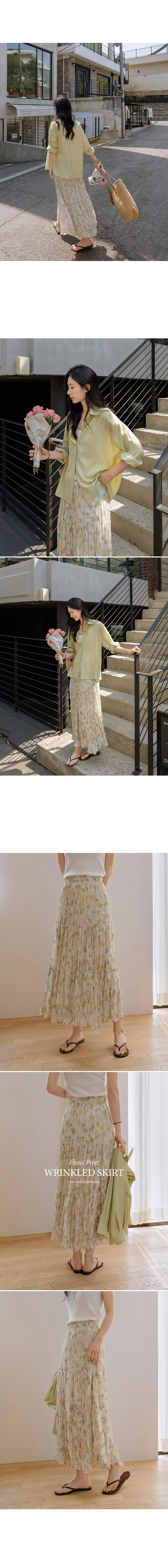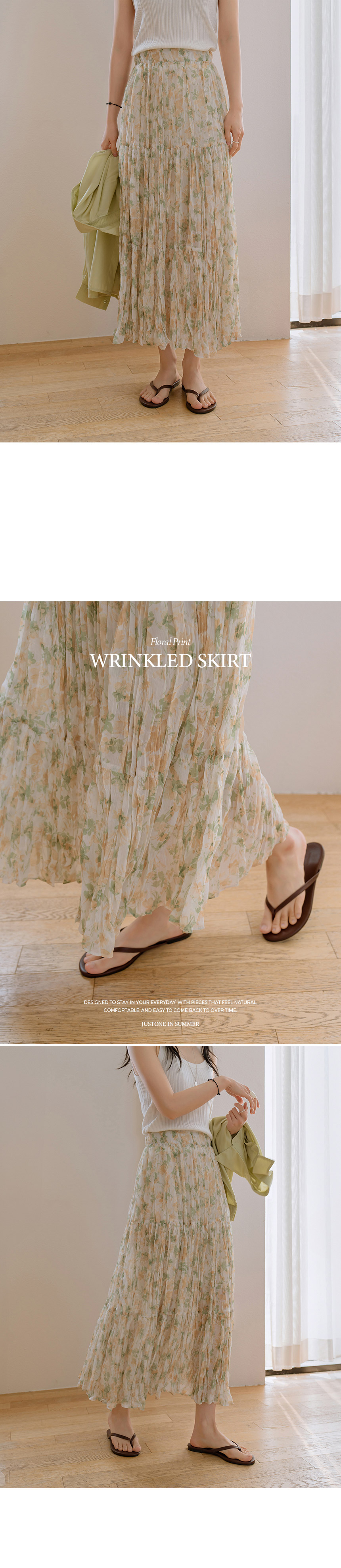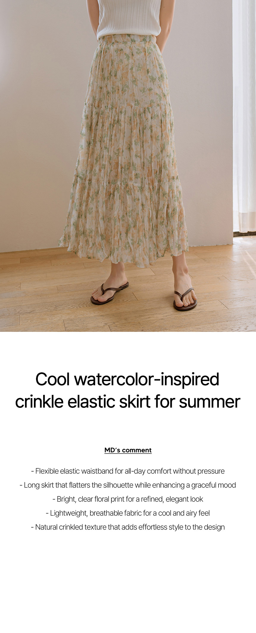Designed with a comfortable elastic waistband and an elegant silhouette, this stylish summer long skirt features a natural crinkled texture. The delicate watercolor floral print adds a soft, romantic touch.