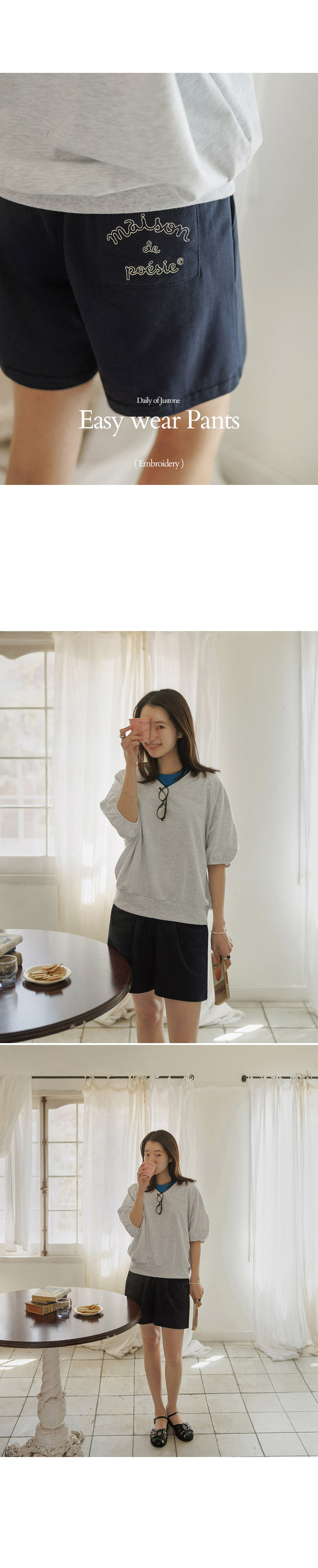 Easywear Embroidered Hip-line Elastic Shorts