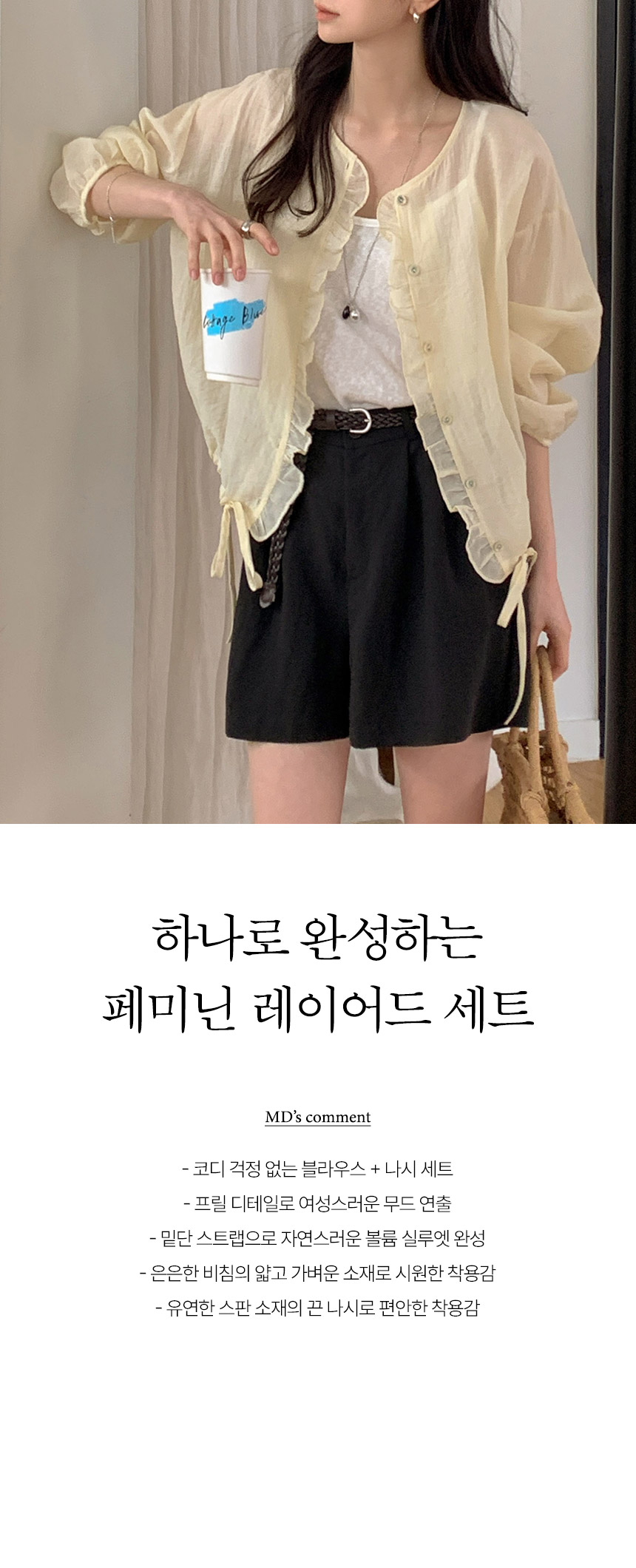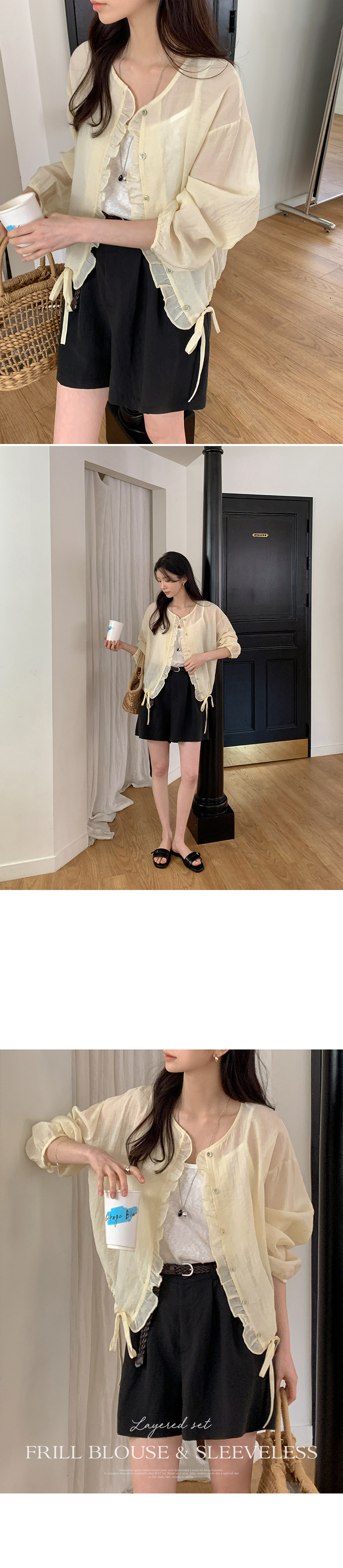 This set includes a blouse and a sleeveless top, making it easy to layer. The lightweight fabric and frill details add a feminine touch, and it can be styled beautifully either together or on their own.
