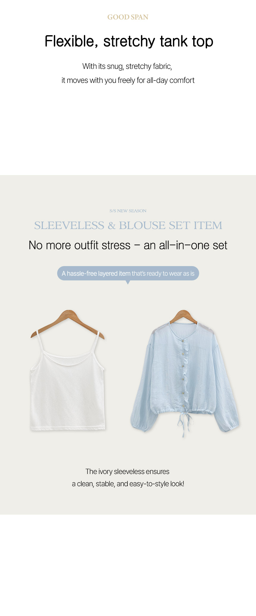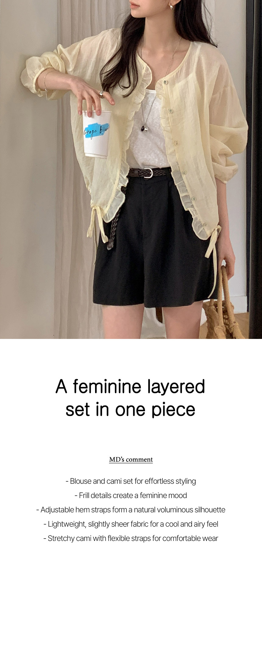 This set includes a blouse and a sleeveless top, making it easy to layer. The lightweight fabric and frill details add a feminine touch, and it can be styled beautifully either together or on their own.