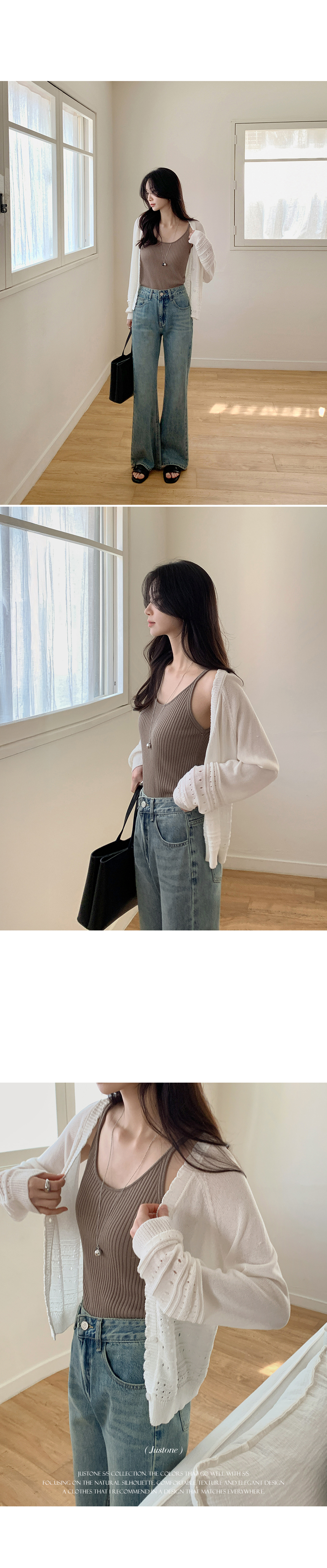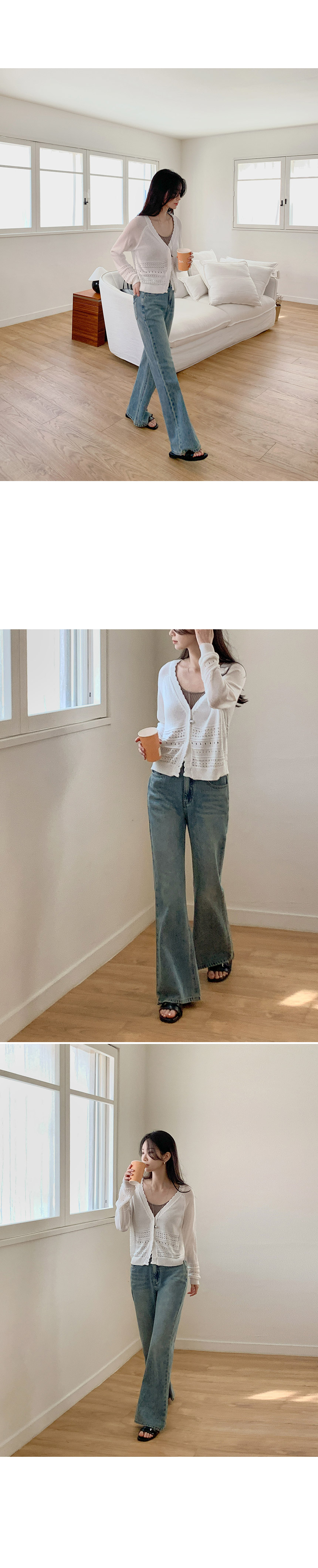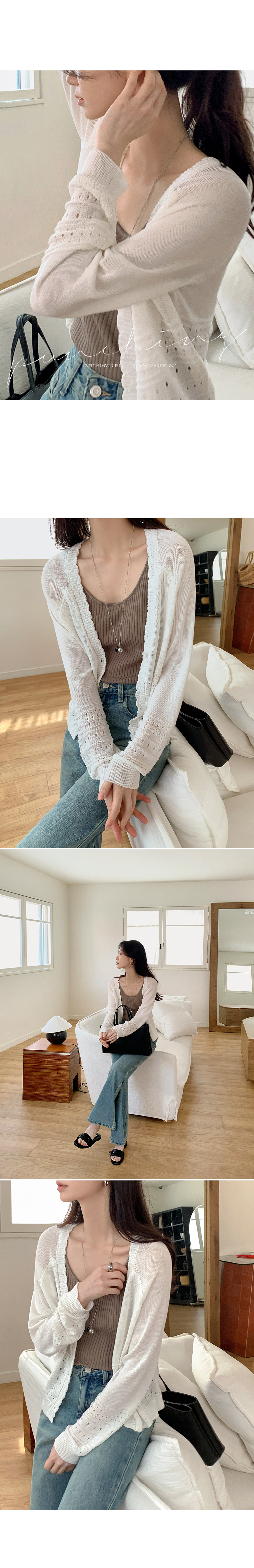 This cardigan features wave and punched detailing that adds a feminine touch. Made from a crisp, lightweight fabric, it’s perfect for light layering in the summer sun or in air-conditioned indoor spaces :)
