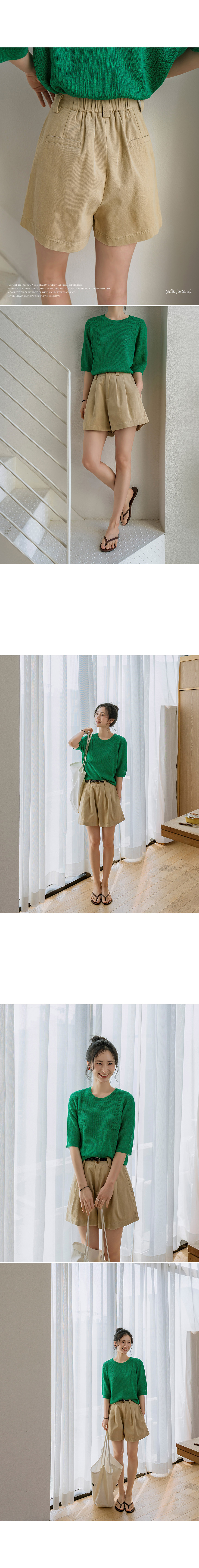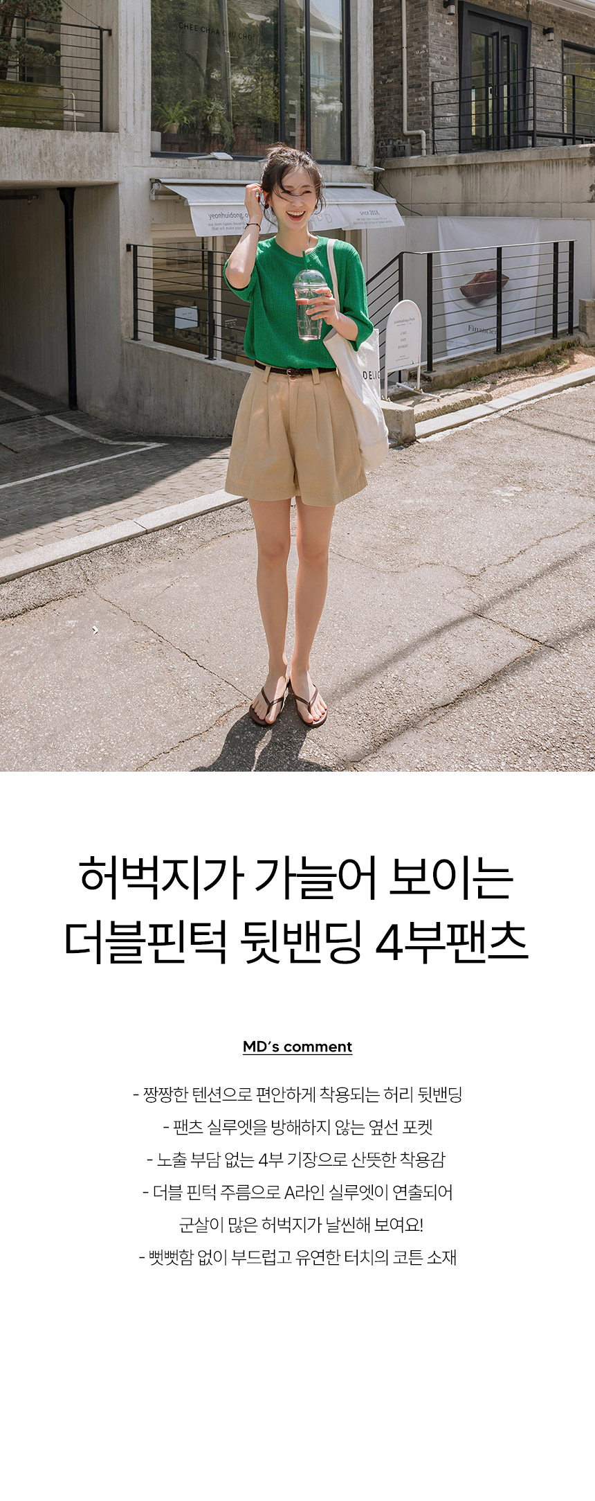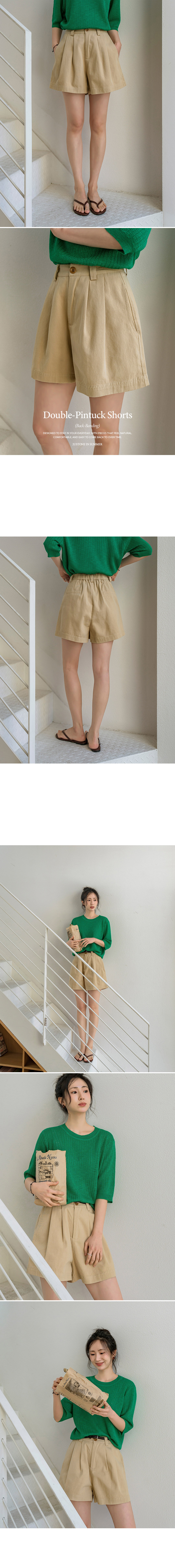 Mid-thigh pants with a flattering A-line silhouette that creates a slimming effect on the thighs. The wide fit, enhanced by double pintucks, helps elongate and refine the leg line, while the flexible cotton fabric ensures both comfort and an excellent fit.