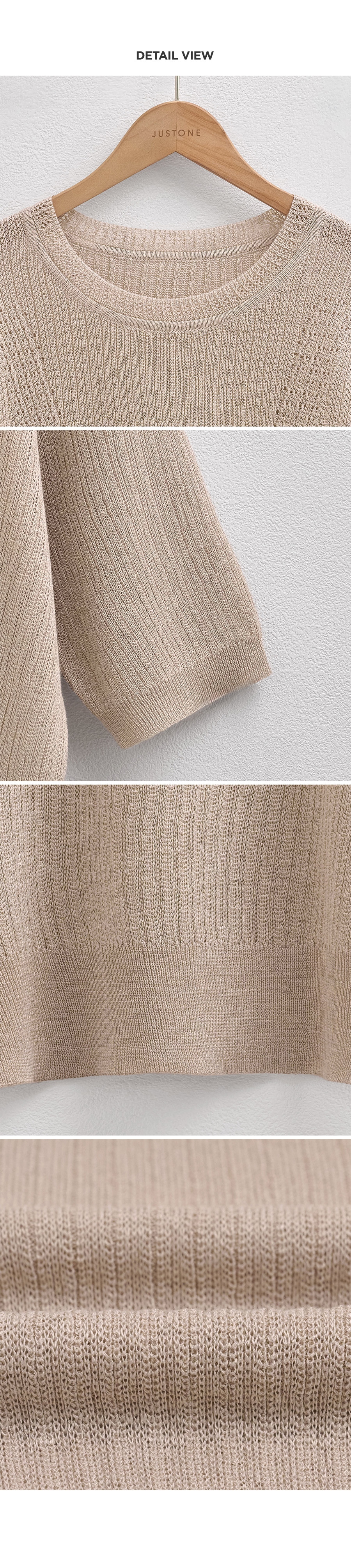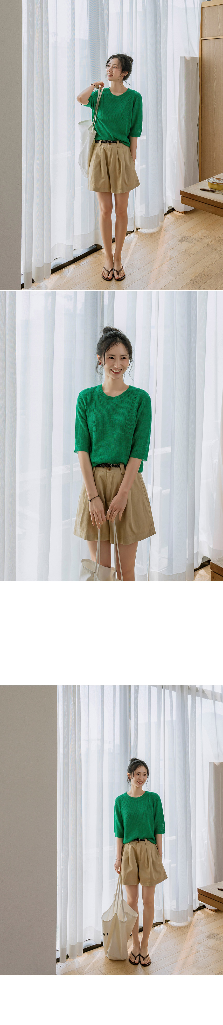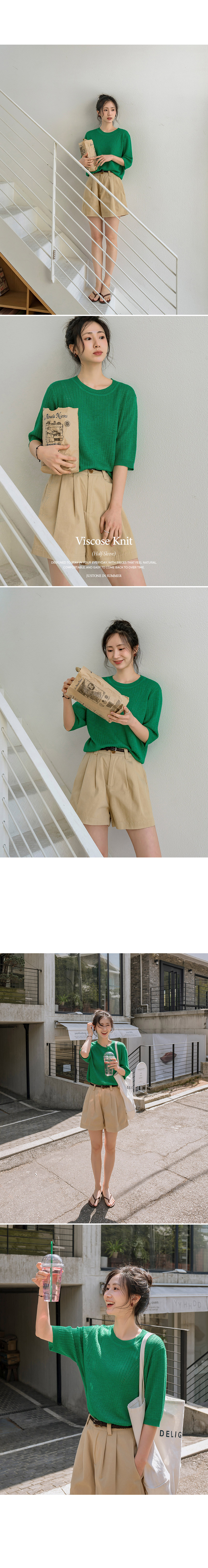 This is a knitwear you won’t want to give up, even in the height of summer. Crafted from a breathable linen-viscose blend, it offers a cool, airy feel. The half-sleeve design provide subtle coverage for the upper arms, while the delicate knit texture gives it a cleaner, more refined look than a basic T-shirt.