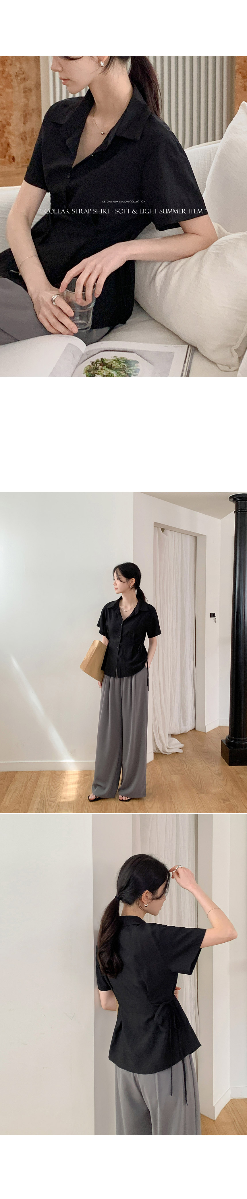 This classic collared shirt features side strap details that define and flatter the waist. Crafted from lightweight cotton, it feels cool and comfortable to wear. Highly versatile, it pairs effortlessly with everything from skirts and tailored slacks to denim.