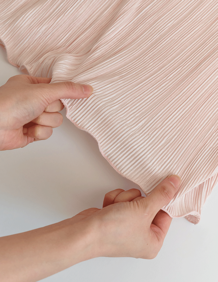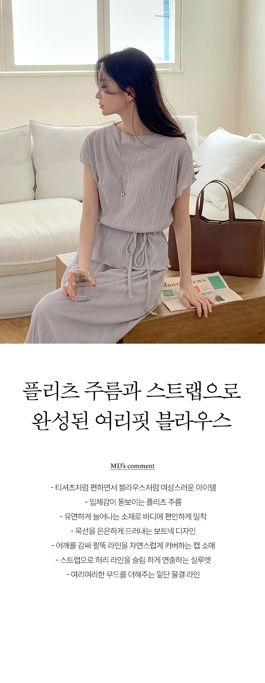 Eye-catching three-dimensional pleats! The boat neck and cap sleeve design completes a delicate, feminine look. Simply wearing it creates a graceful atmosphere.