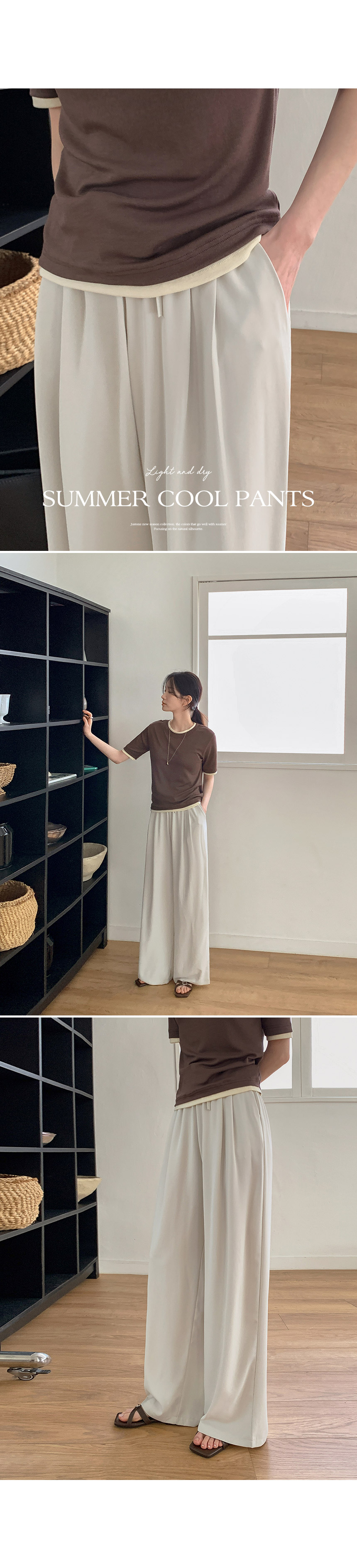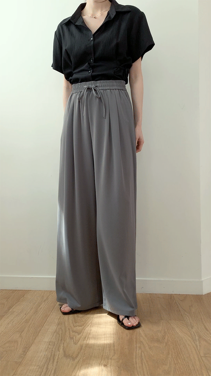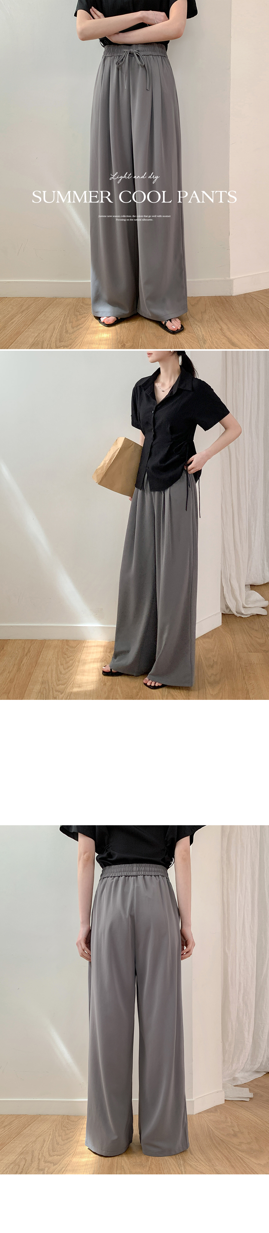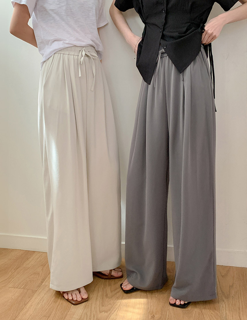 Experience an immediate cooling effect with a lightweight, non-stick fabric that feels fresh against your skin even as temperatures rise. • Elegant Wide-Leg Silhouette 📐The relaxed wide fit offers a sophisticated A-line drape that naturally conceals and flatters while providing maximum breathability. • Adjustable Comfort Banding 🧶Features an all-around elastic waistband paired with a functional strap detail, allowing you to customize the fit to your body type with ease. 📋 Product Essentials
