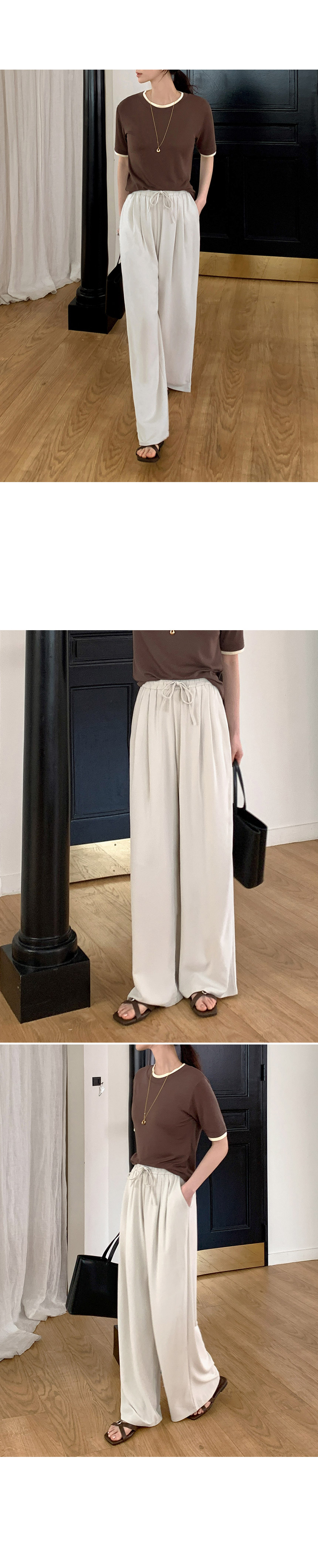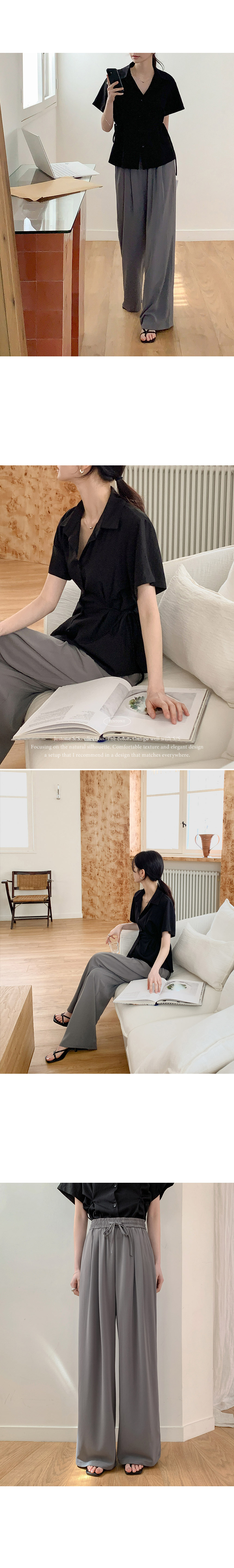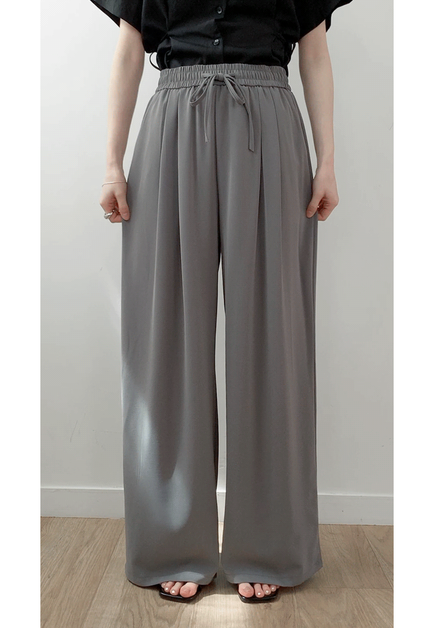 Experience an immediate cooling effect with a lightweight, non-stick fabric that feels fresh against your skin even as temperatures rise. • Elegant Wide-Leg Silhouette 📐The relaxed wide fit offers a sophisticated A-line drape that naturally conceals and flatters while providing maximum breathability. • Adjustable Comfort Banding 🧶Features an all-around elastic waistband paired with a functional strap detail, allowing you to customize the fit to your body type with ease. 📋 Product Essentials