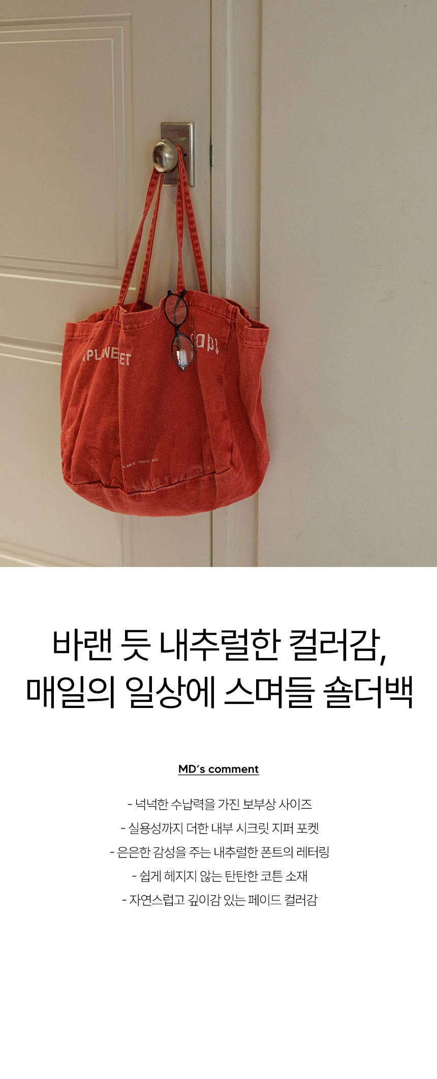 A shoulder bag with an attractive, natural, faded color! Made from sturdy cotton material and featuring a generous size, it offers excellent storage capacity.