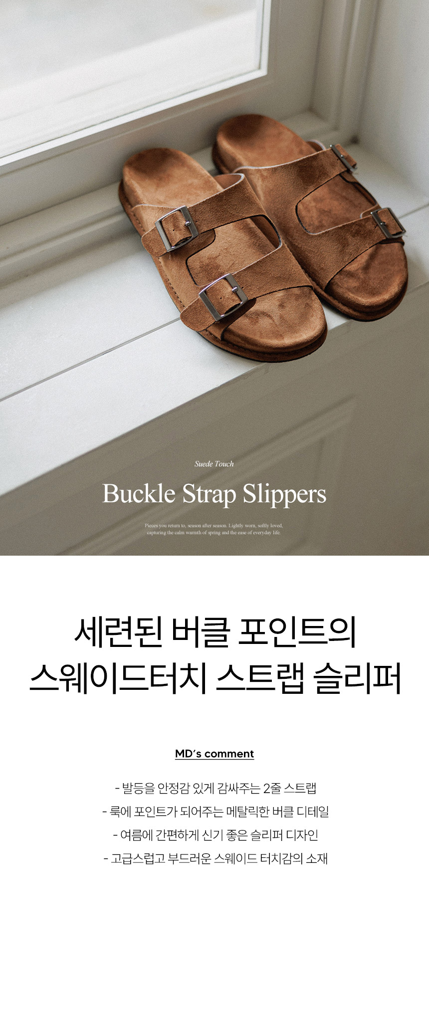 Suede-touch Buckle Strap Slippers