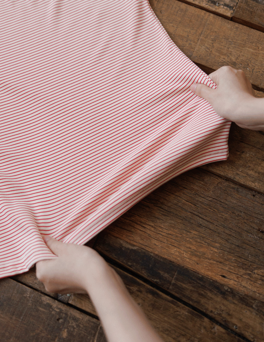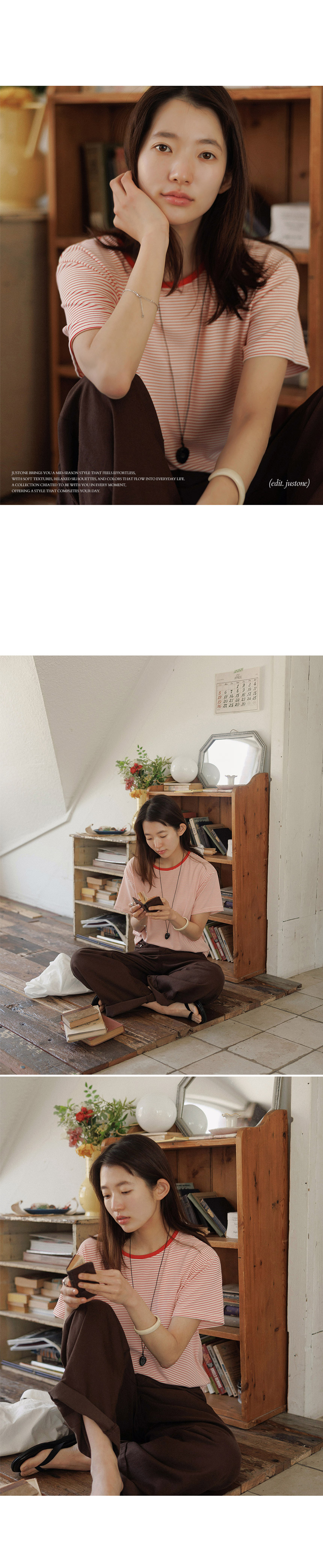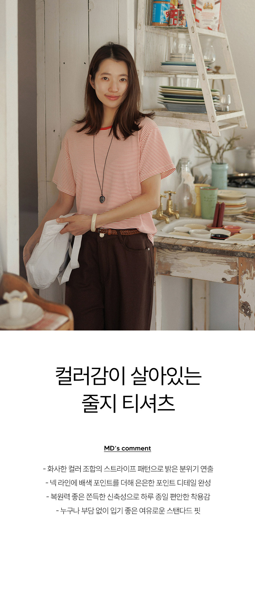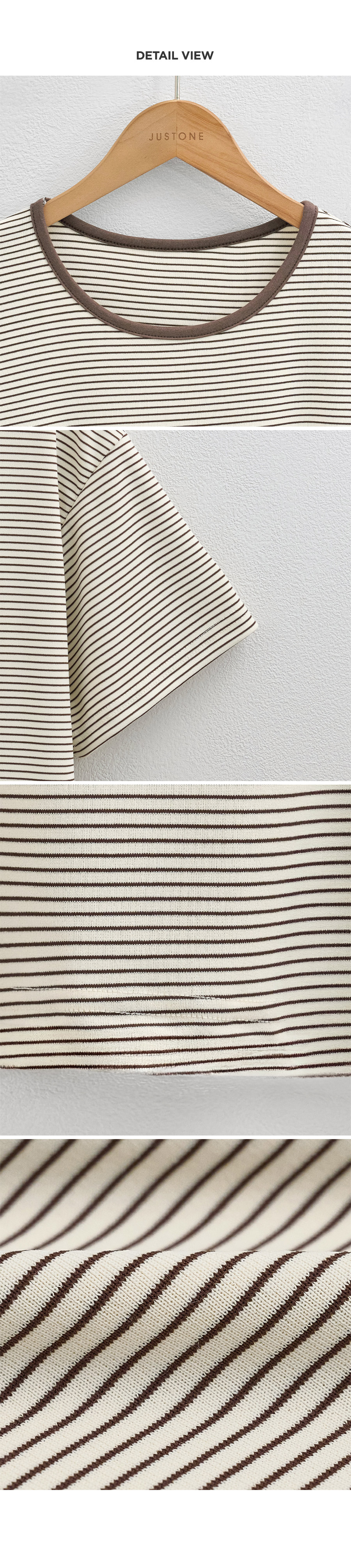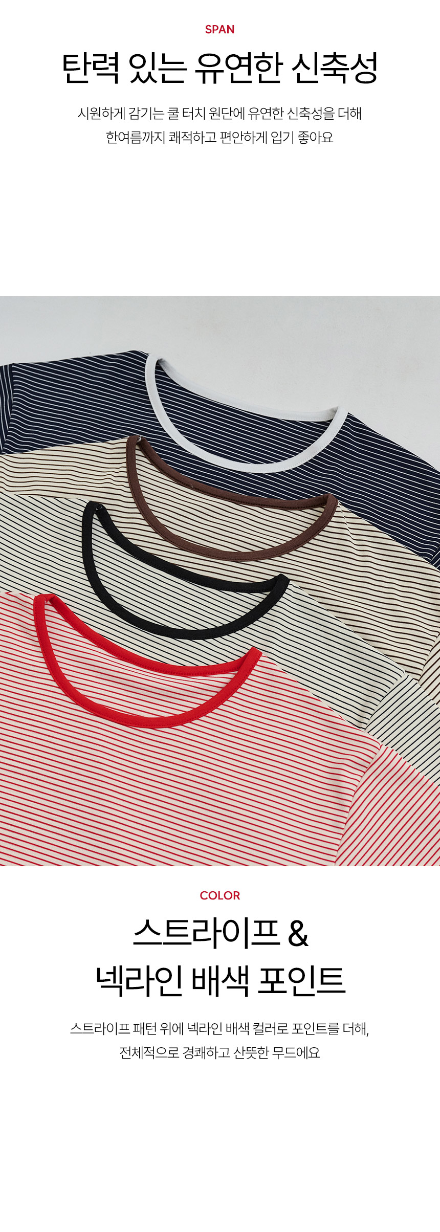 The subtle contrast trim along the neckline adds a refined point of interest, elevating the classic stripe pattern into a sophisticated statement piece. • High-Recovery Elasticity 🧶Engineered with high-tension stretch and excellent recovery, this tee maintains its shape while providing all-day comfort for your active lifestyle. • Effortless Standard Fit ☁️Designed with a relaxed yet structured standard fit that drapes beautifully on any silhouette, making it an easy choice for versatile styling. 📋 Product Essentials