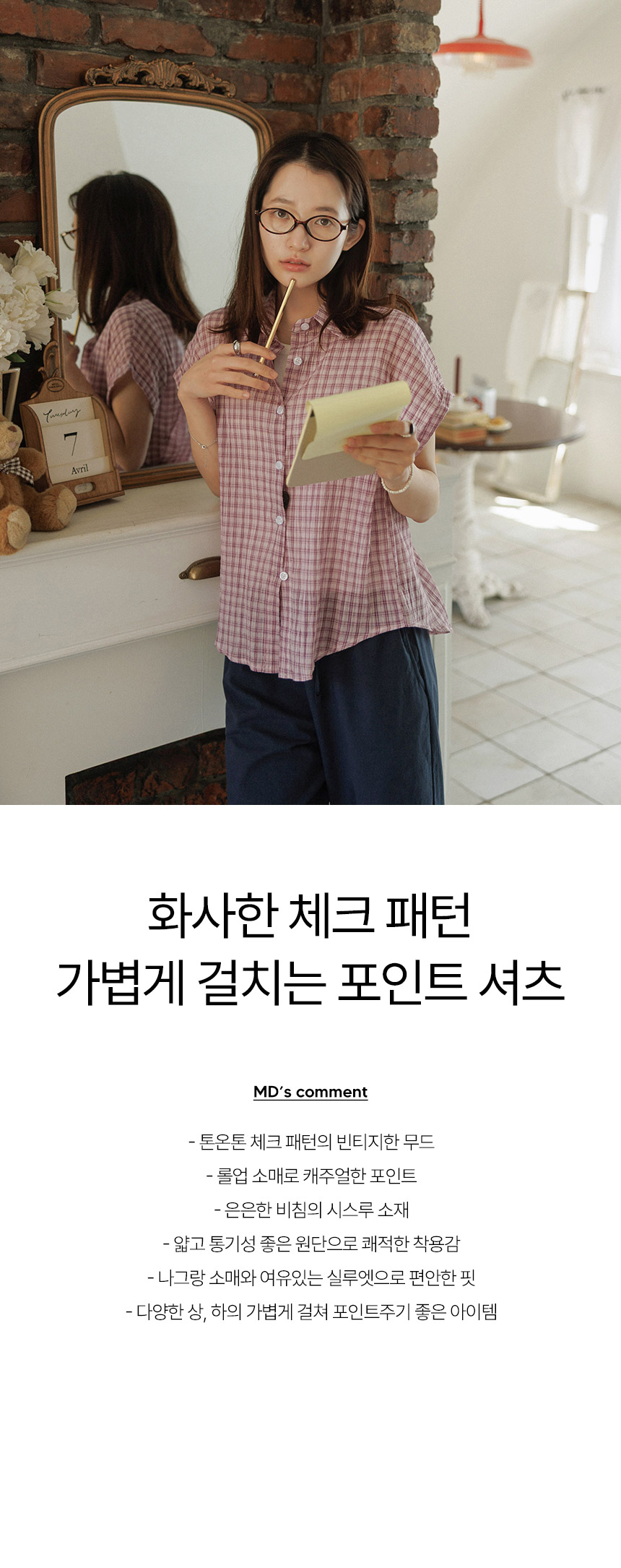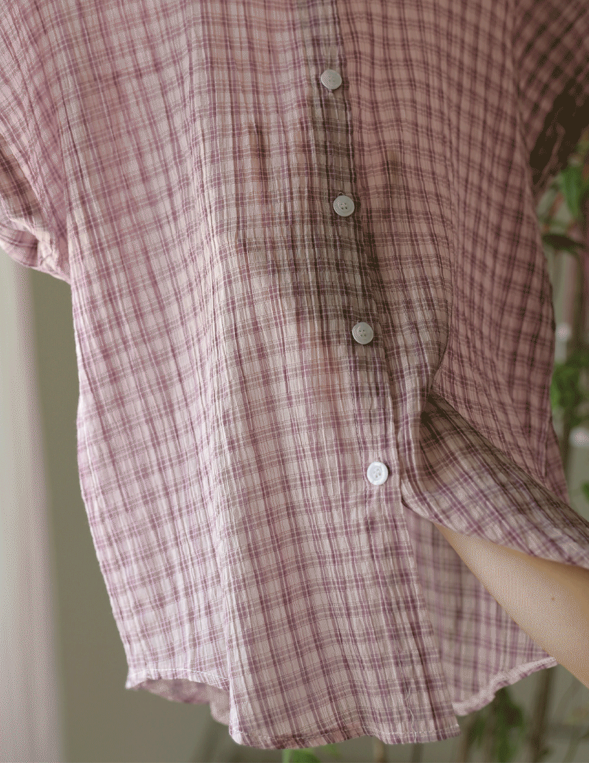 Woven from an ultra-lightweight material with a subtle translucency, this shirt offers exceptional ventilation to keep you feeling fresh even on the most humid days. • Relaxed Raglan & Roll-Up Detail 👕The comfortable raglan sleeve design paired with casual roll-up cuffs creates a laid-back, "Daily Chic" silhouette that transitions perfectly from home to weekend outings. • Sophisticated Vintage Palette 🎨Featuring a refined tone-on-tone check pattern, this piece adds a soft pop of color and a nostalgic vintage mood to your summer wardrobe without being overpowering. 📋 Product Essentials