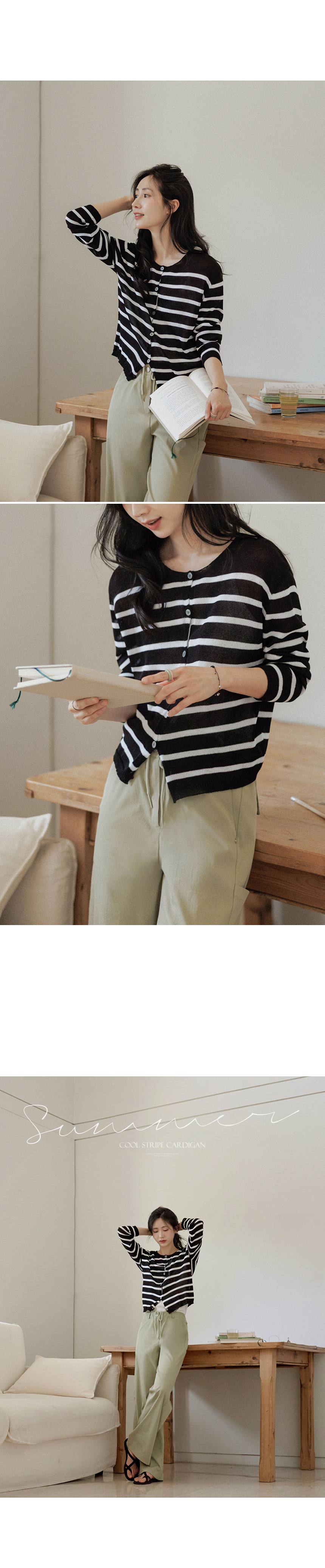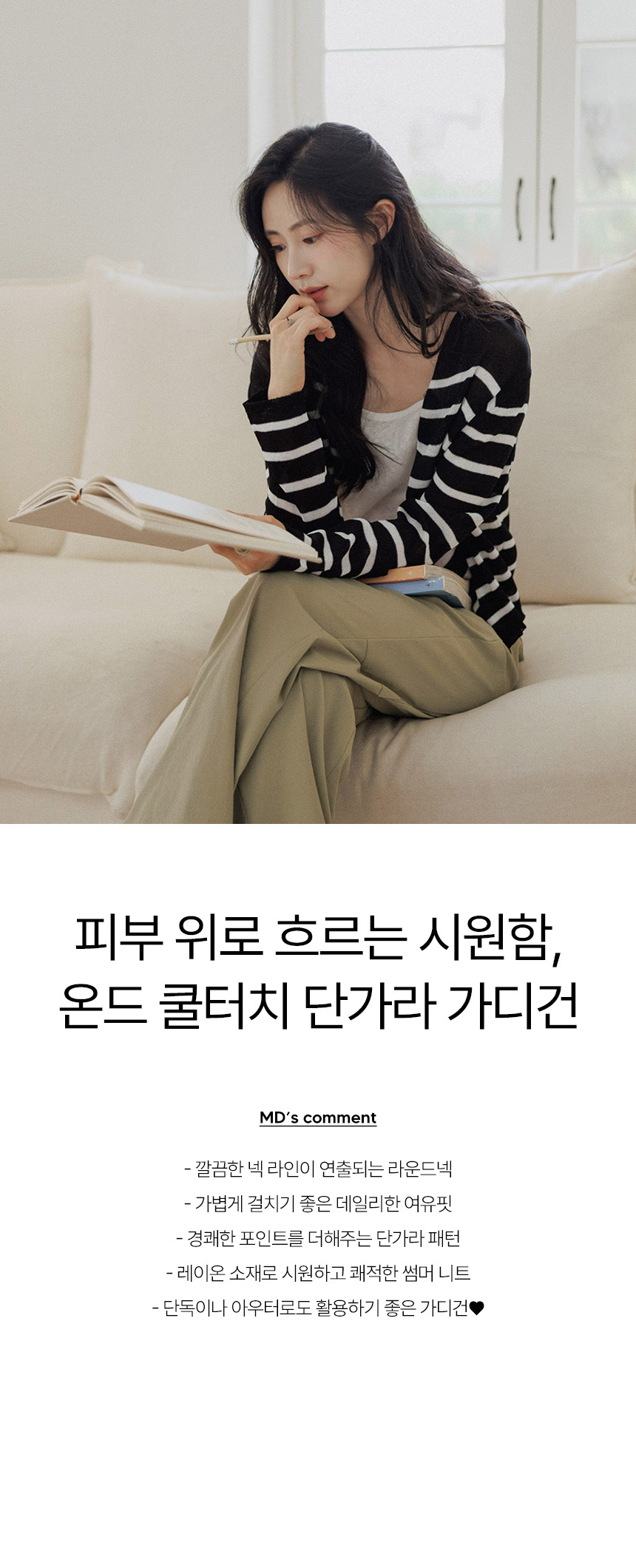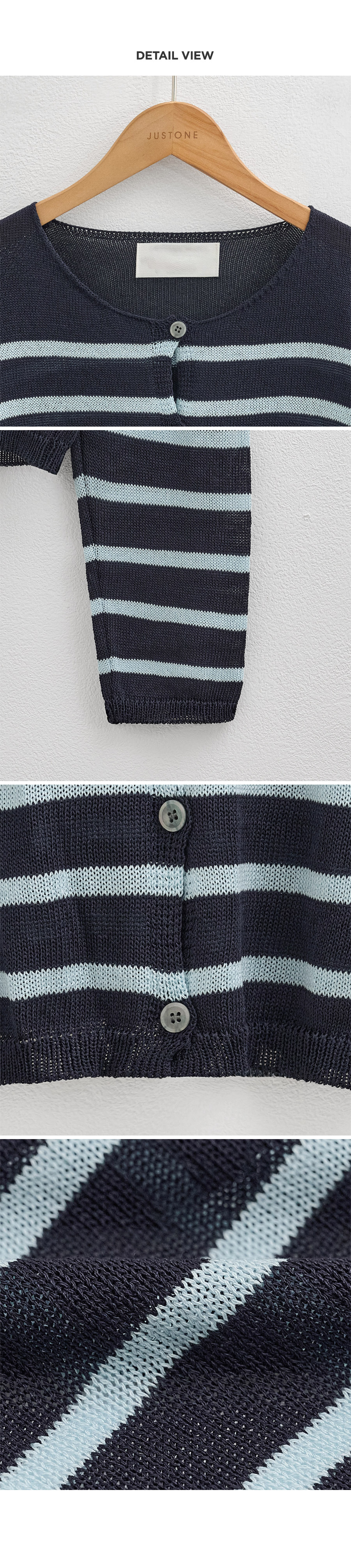 Crafted from premium rayon fibers, this summer knit feels cool to the touch. It wicks moisture away and keeps you feeling incredibly fresh, even in peak humidity. • Chic Nautical Stripe Pattern 🎨The classic "Dangara" (stripe) design provides a crisp, lively focal point to any outfit. It's the perfect blend of timeless maritime style and modern urban chic. • Effortless Dual-Style Silhouette 🕊️With its clean round neckline and relaxed "easy fit," wear it buttoned up as a sophisticated top or open as a light cardigan. A versatile essential for the office or weekend escapes. 📋 Product Essentials