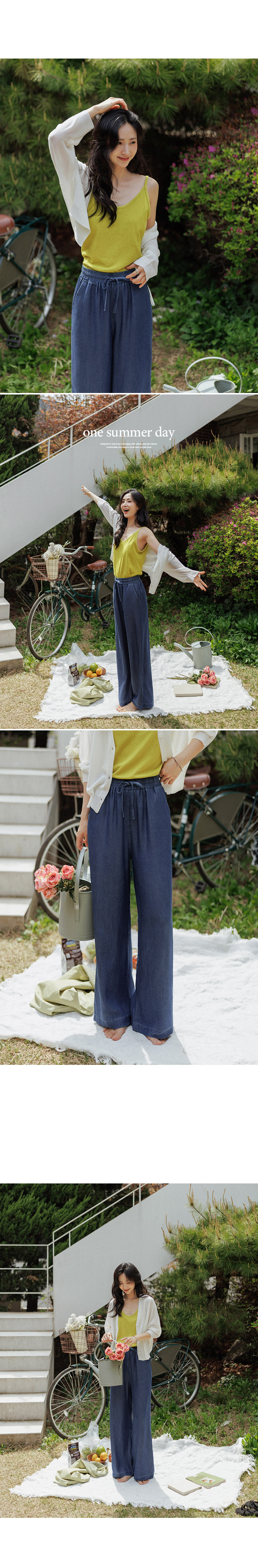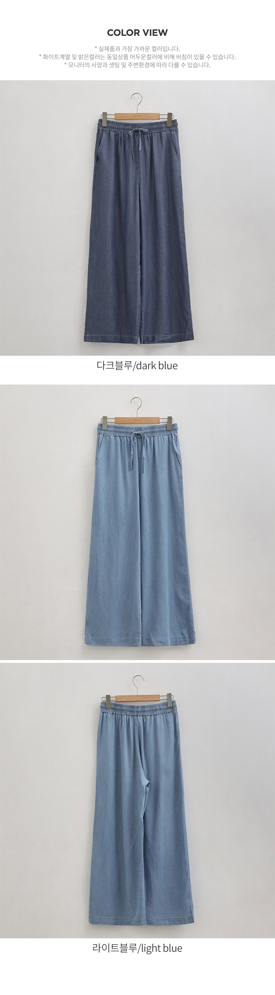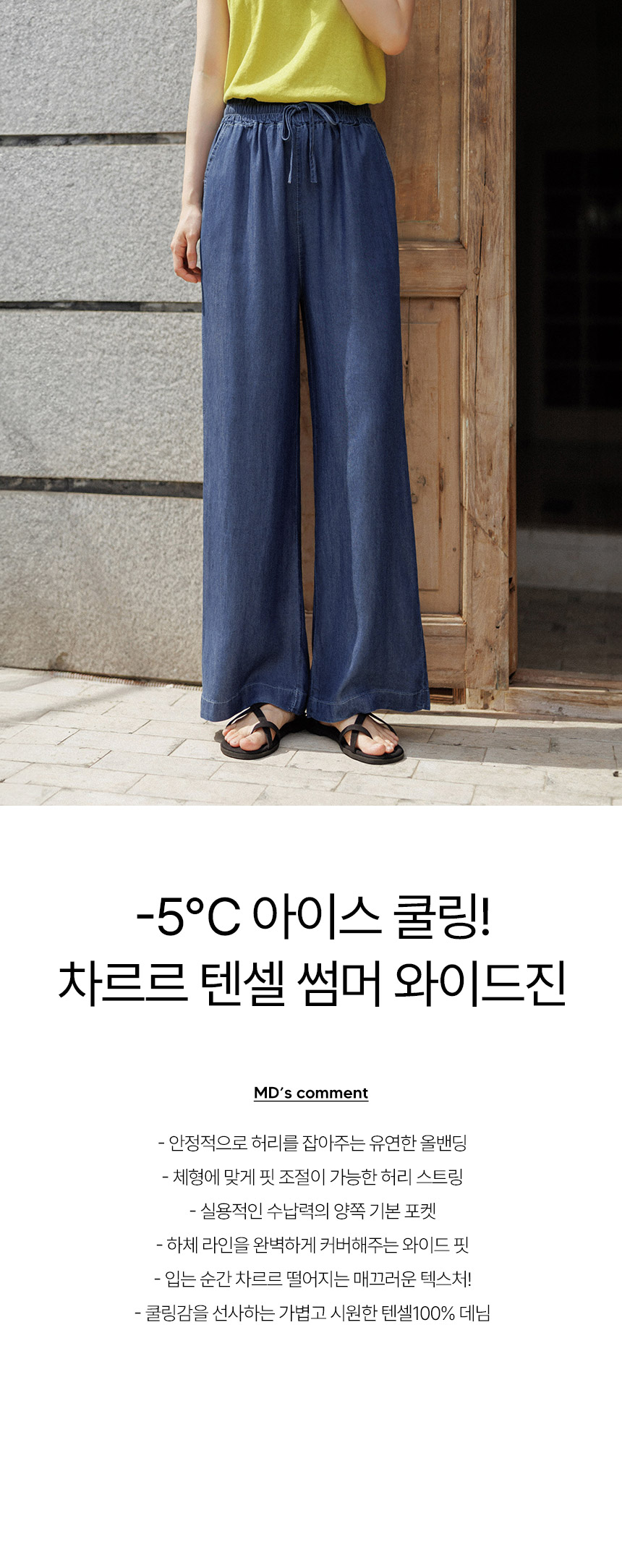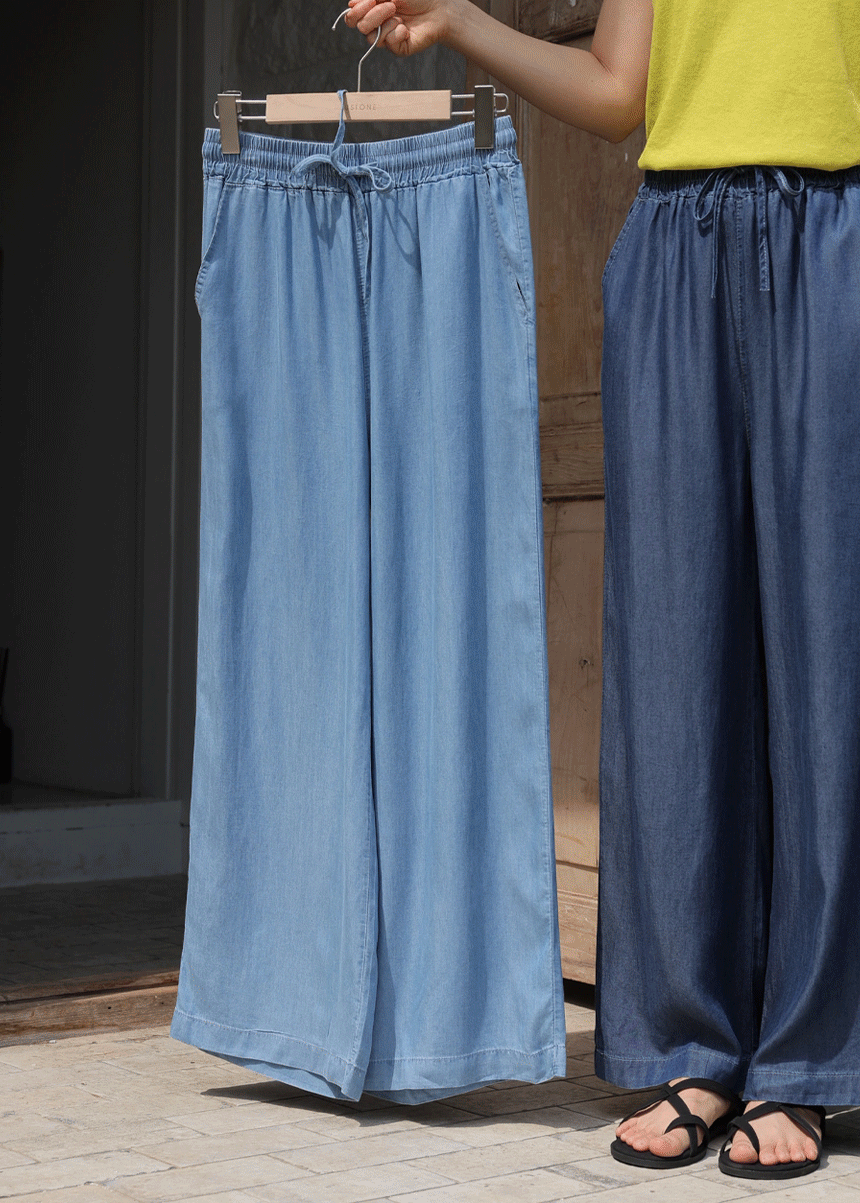 Experience an immediate cooling sensation the moment it touches your skin. This premium 100% Tencel denim is more breathable than standard cotton and drapes more smoothly than silk. • "Pressure-Zero" All-Banding Waist 🧵Designed for maximum comfort during long-term wear, the flexible all-around elastic waistband gently hugs the waist without any restrictive pressure. • Flawless Wide-Leg Coverage 📐The fluid wide fit perfectly conceals the lower body line while creating a sleek, elongated silhouette. Features an adjustable waist string for a customized fit on any body type. 📋 Product Essentials