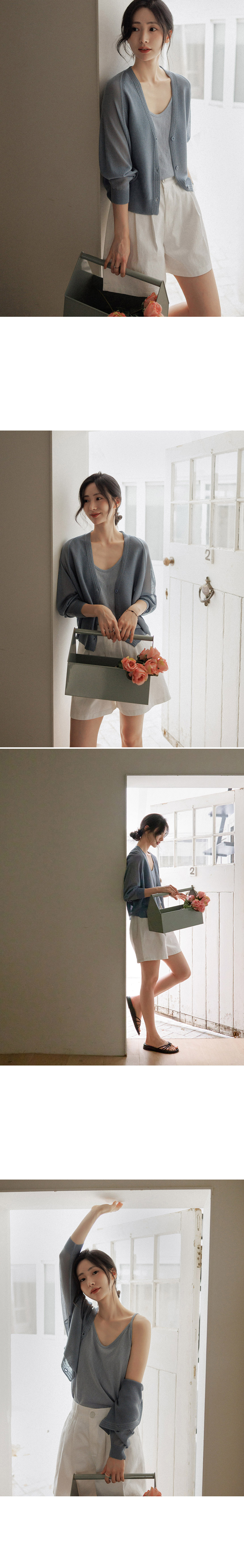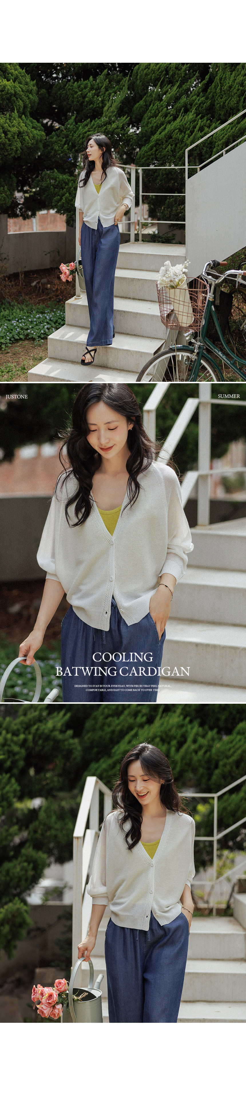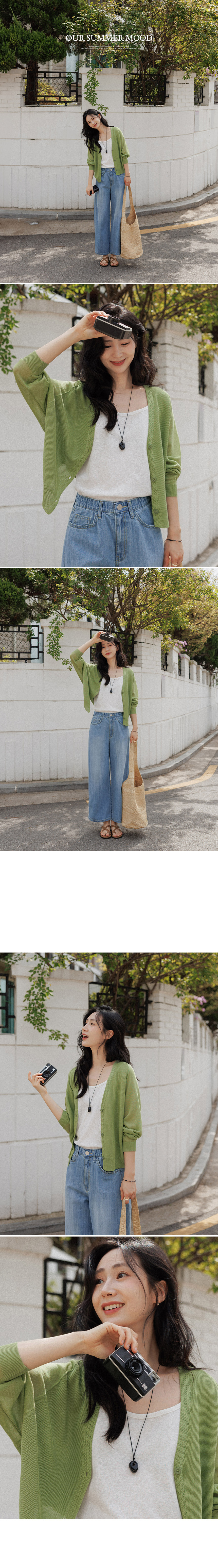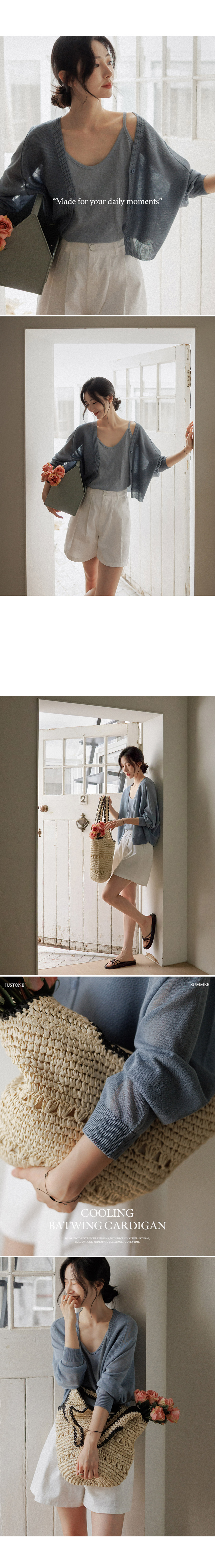Crafted from high-quality viscose, this knit offers a signature cooling sensation that doesn't cling to the skin. Stay crisp and dry even in humid weather with its superior moisture-wicking properties. • Effortless Batwing Silhouette 🕊️The relaxed batwing fit naturally drapes over the body, providing comfortable coverage while creating a slender, delicate look. The sophisticated V-neckline elongates the neck for a polished finish. • High-Detail Y-Line Finish 🧶The contrast knit texture along the Y-line hem adds a subtle point of luxury. Paired with color-matched premium buttons, it delivers a high-quality aesthetic that elevates a simple daily outfit. 📋 Product Essentials