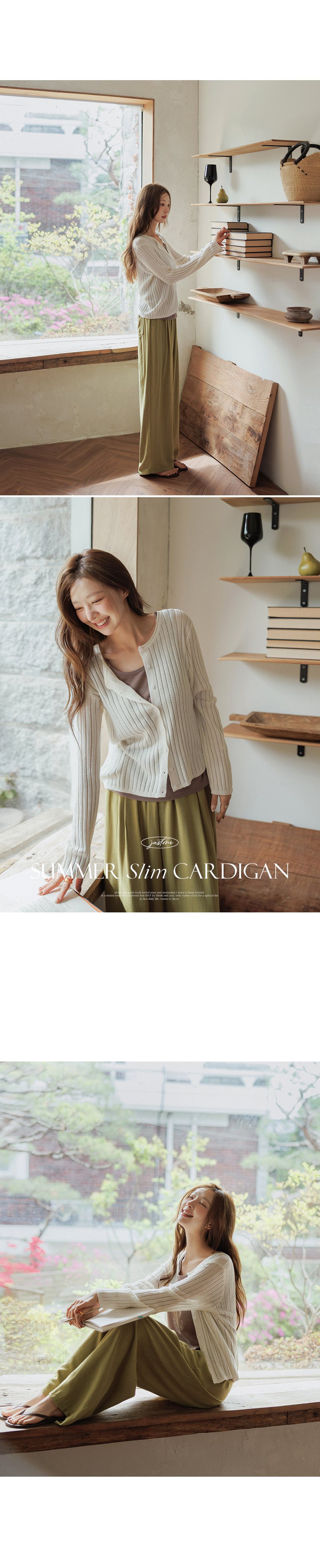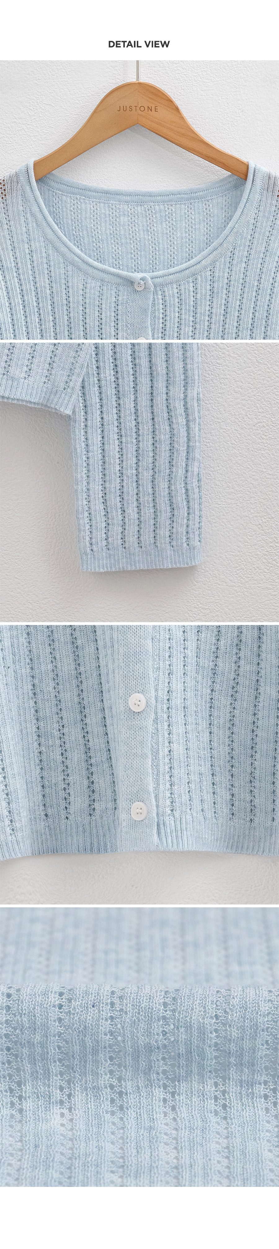 This is a slim cardigan featuring refreshing summer colors. The delicate punching design adds a feminine touch, and the breathability ensures a cool, comfortable fit, making it a perfect summer item!