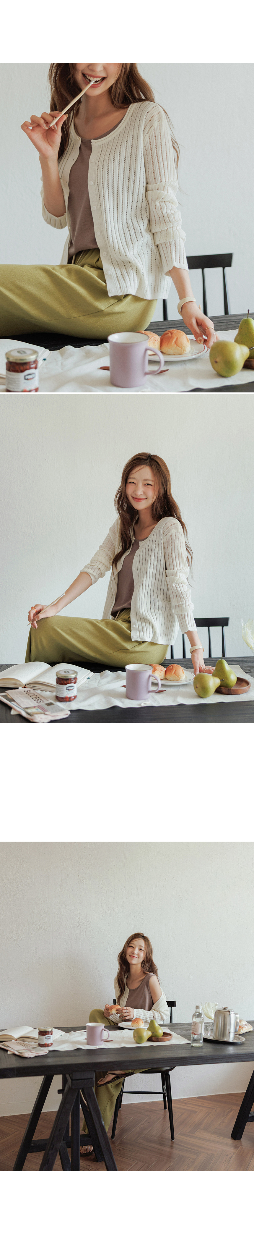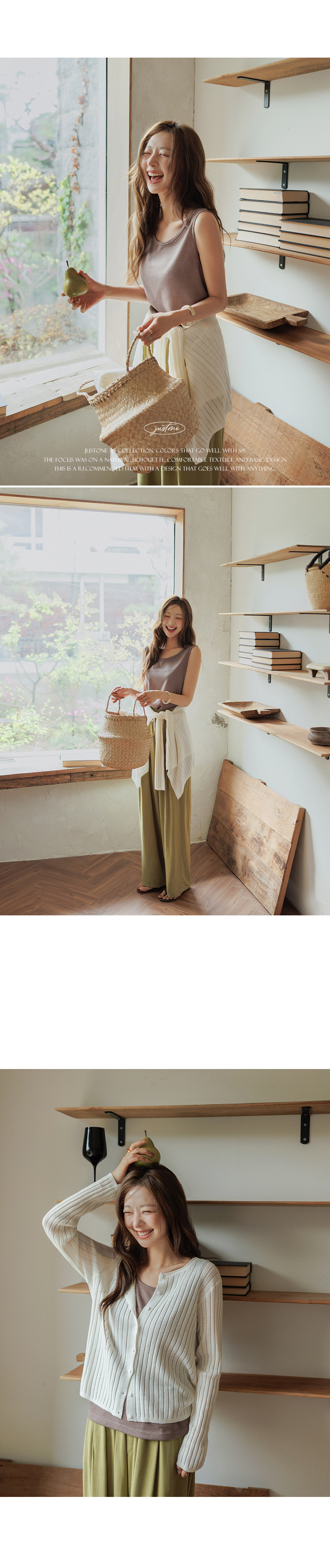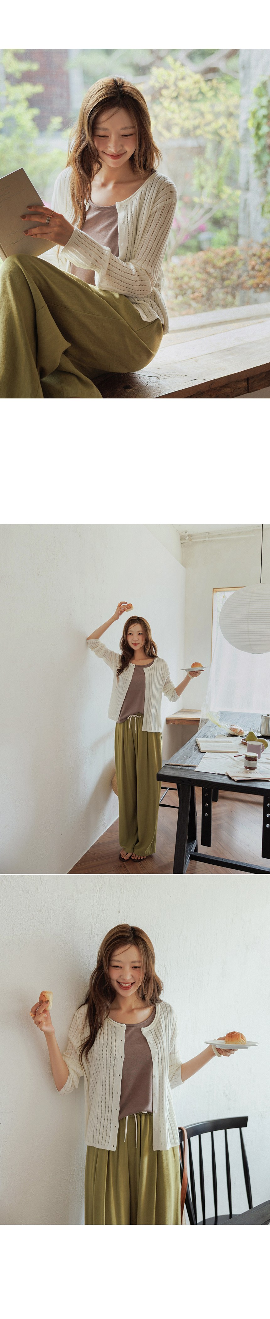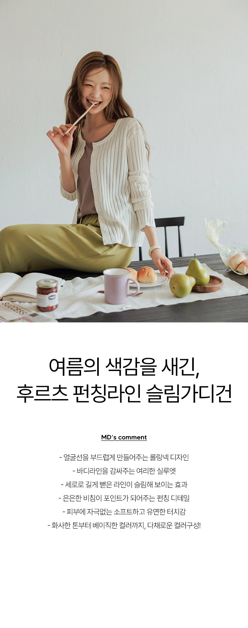 The soft, rolling neckline design naturally frames the face, adding a touch of feminine elegance and a gentle, softened impression to your everyday look. • Vertical Slimming Pointelle 🧶Features a sophisticated vertical punching detail that creates a subtly sheer, elongated silhouette, offering a slimming effect that feels light and airy. • Ultra-Soft Irritation-Free Touch ☁️Crafted with a flexible and buttery-soft texture that feels smooth against the skin, making it the perfect lightweight layer for sensitive skin during warmer months. 📋 Product Essentials