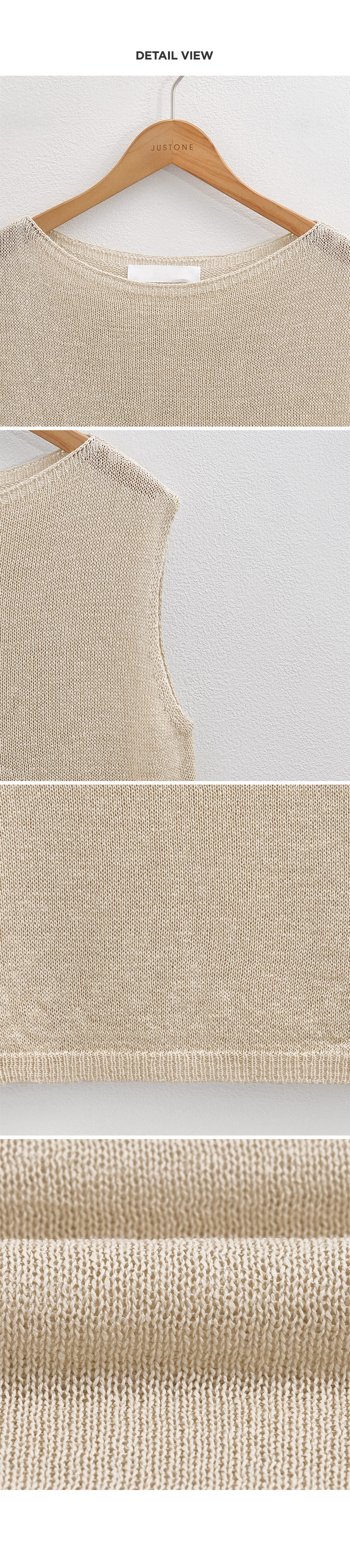 A linen tank top with a crisp, breathable texture that doesn’t cling to the body, perfect for comfortable summer wear. Enjoy a naturally cool feel with this Hanji-inspired knit fabric.