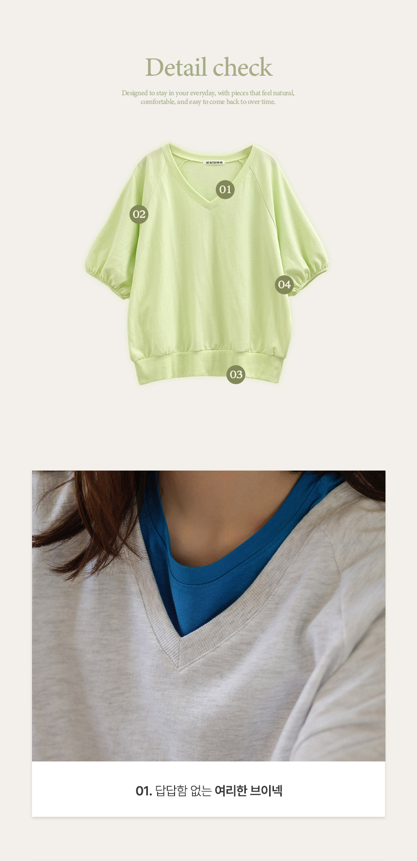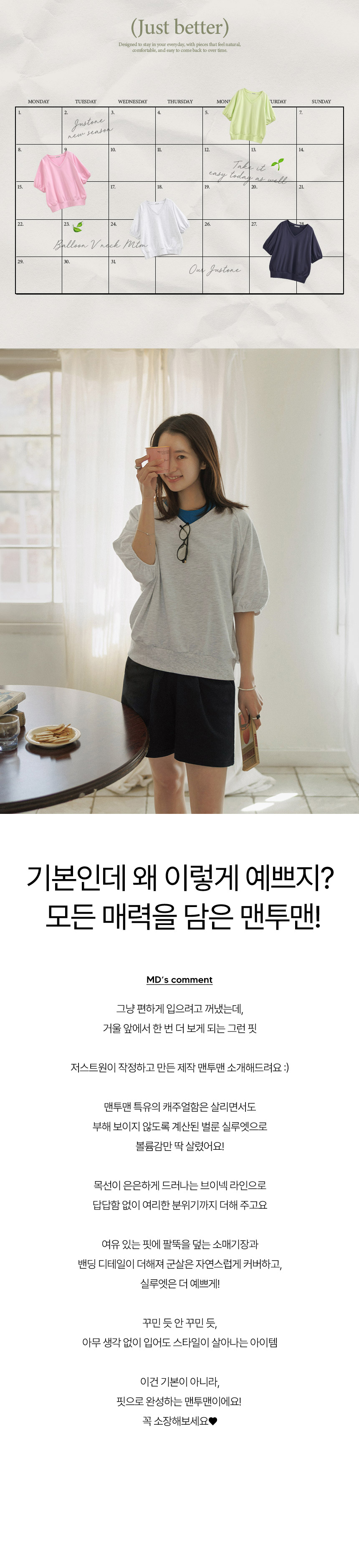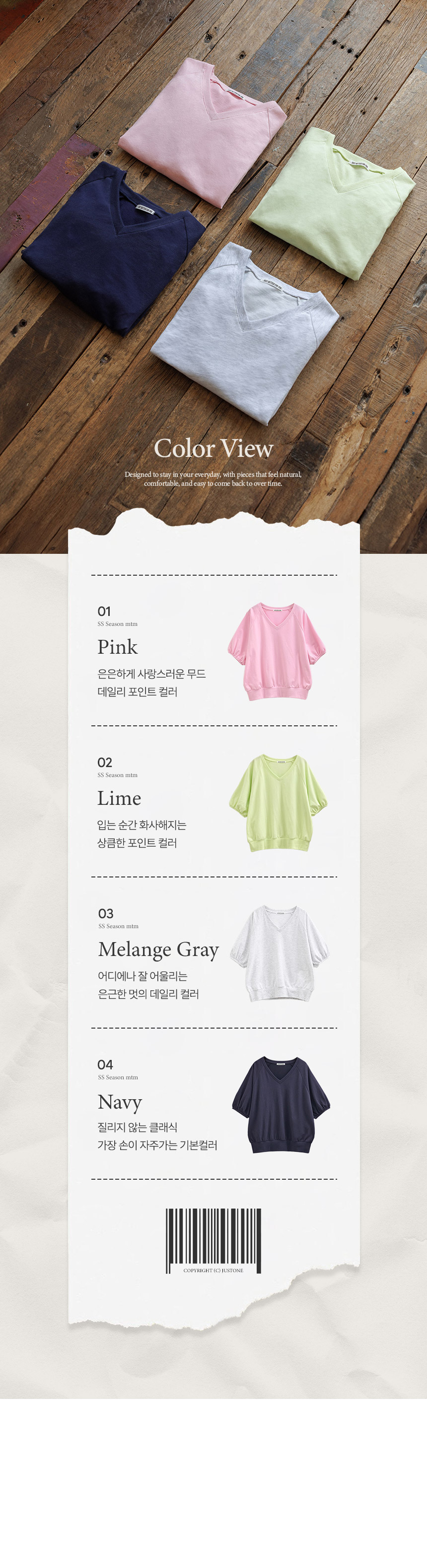 Expertly designed to provide volume without the bulk. This specialized "Balloon Cut" offers a soft, rounded shape that maintains a clean, slim silhouette while adding a touch of modern flair. • Delicate V-Neckline Design 🦢A subtle, feminine V-neck that elongates the neck and adds an airy, refreshed feel. It balances the casual sweatshirt vibe with a refined "Daily Chic" elegance. • Secure Banding & Coverage 🛡️Featuring premium banded cuffs and hem that naturally disguise the upper arm area and provide a structured fit. It's the ultimate "effortless" piece for a polished, put-together look. 📋 Product Essentials