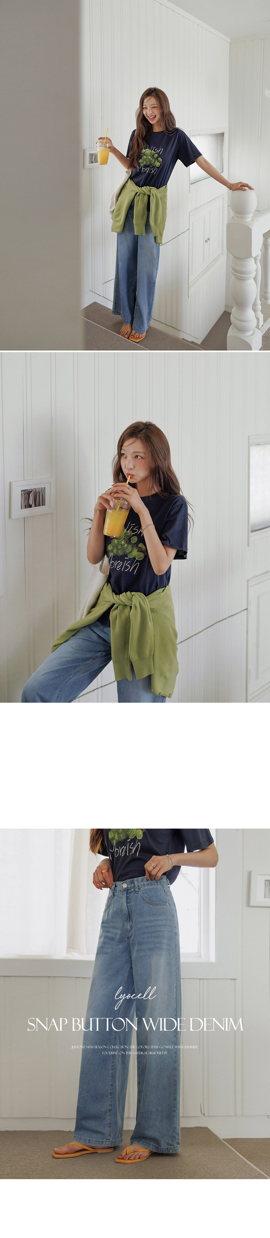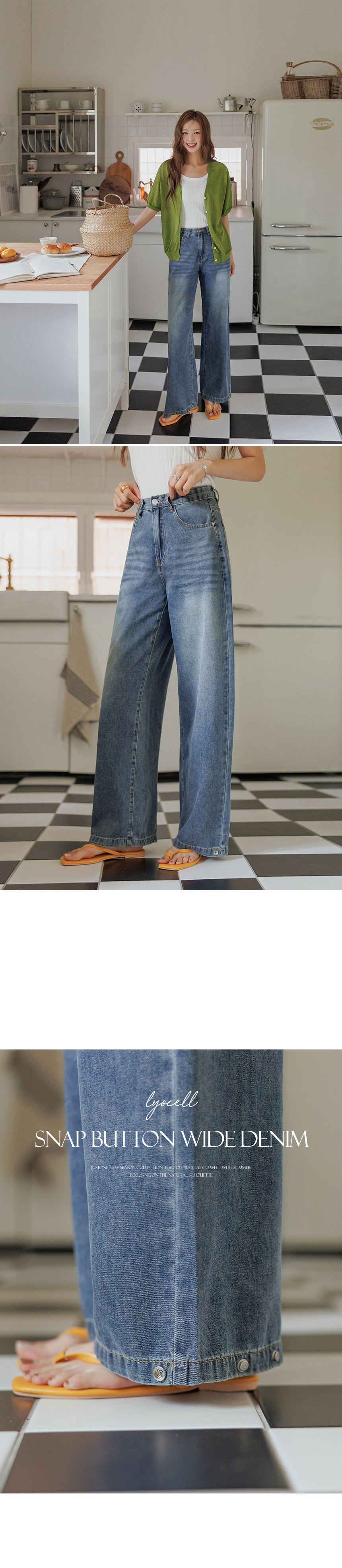 Made from silky-soft lyocell denim, these jeans are perfect for staying light and cool during the summer. Designed with a relaxed wide-leg fit and snap buttons at the hem, they offer versatile styling options for different looks.
