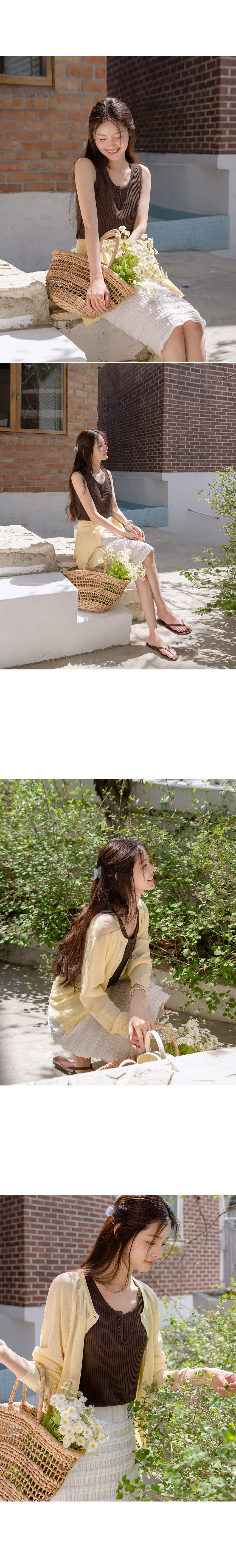 The seamless raglan sleeve design creates a soft, natural shoulder line that flatters any silhouette while providing ultimate freedom of movement. • Airy Ultra-Light Knit 🌬️Crafted from a specialized summer-weight knit that sways gently in the breeze. It’s light enough for peak summer heat yet perfect for air-conditioned indoors. • Feminine Aesthetic 🌸The delicate, sheer texture offers a slim, ethereal look that elevates your daily outfit with a touch of sophisticated elegance. 📋 Product Essentials