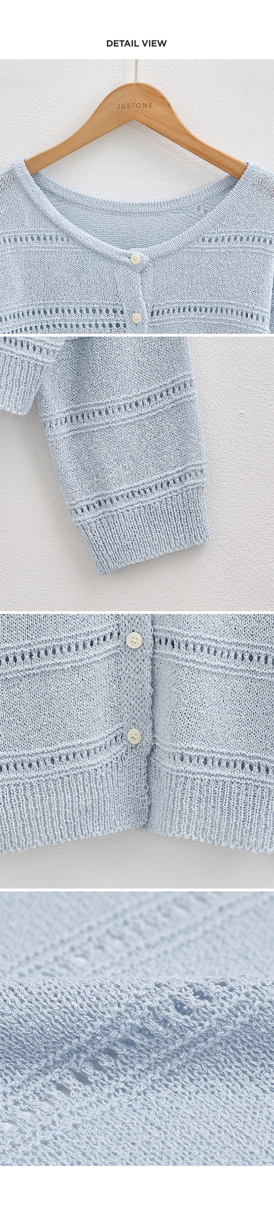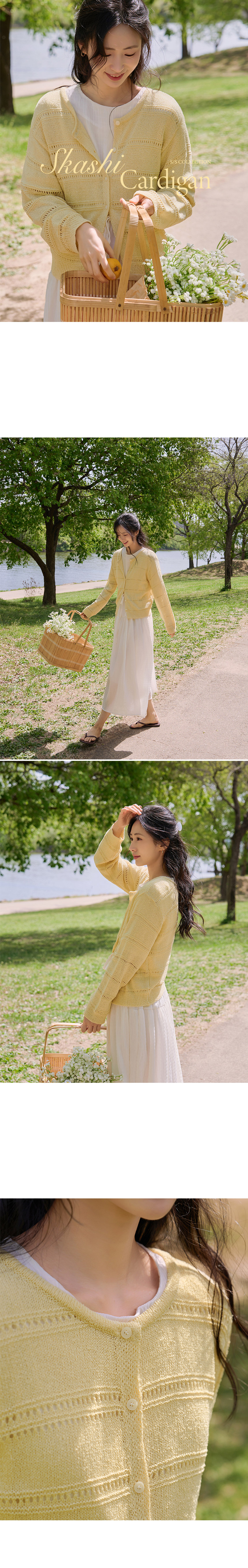 Features a subtle, intricate pointelle stitch that adds a lovely, textured point to your outfit while maintaining a sophisticated, understated charm. • Airy "Cool-Touch" Comfort 🌬️Crafted from a specialized summer-weight knit fabric that feels cool against the skin, making it the perfect "anti-sun" layer or indoor cover-up even in peak heat. • Delicate & Fluid Silhouette 🦢The lightweight knit gently drapes over the body for a slender, fragile silhouette that looks effortlessly chic whether draped over shoulders or worn closed. 📋 Product Essentials